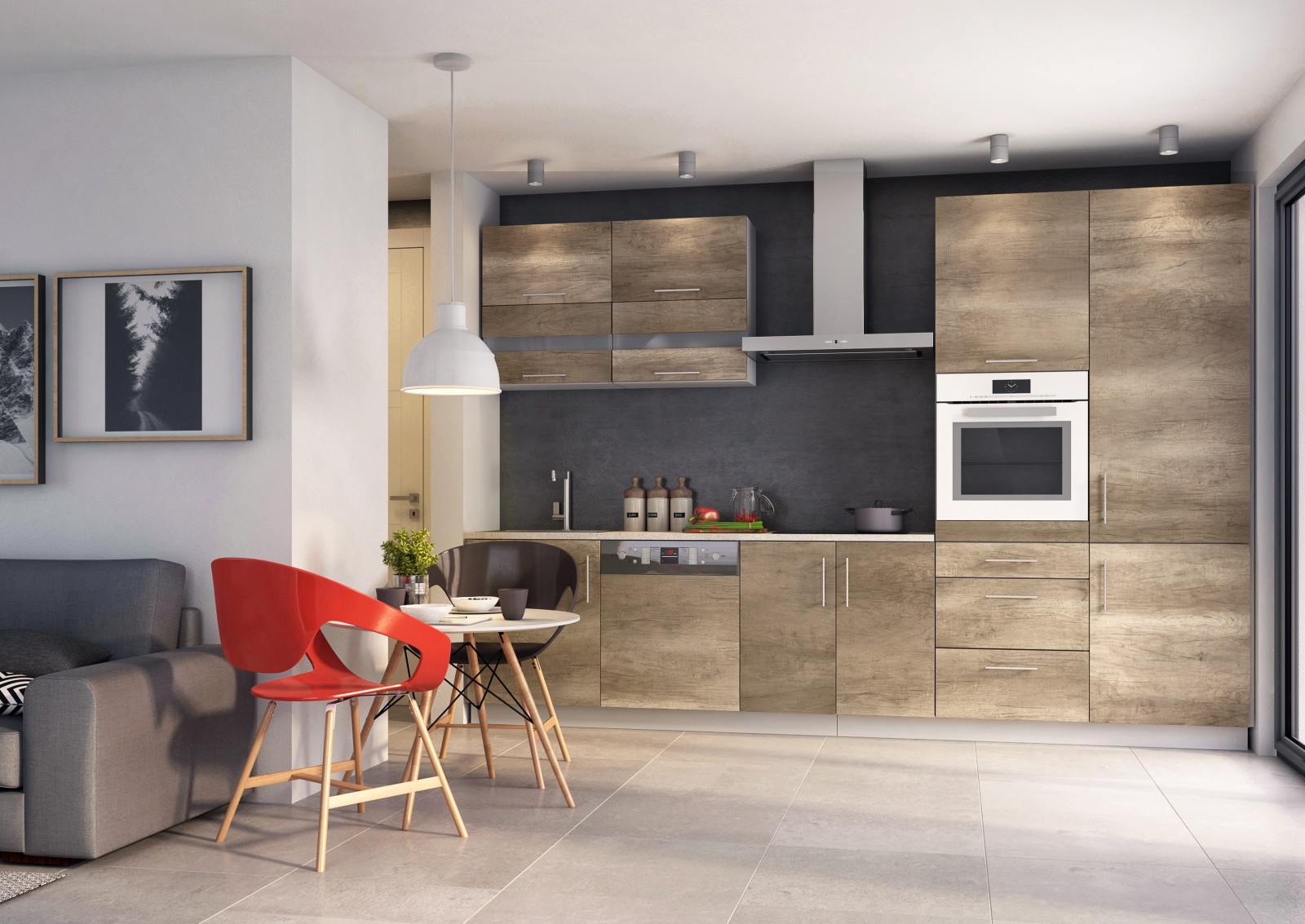 Luna Canyon to nowoczesna kuchnia, jednakże wzornictwem nawiązująca do stylu rustykalnego. Mocny, wyrazisty rysunek drewna wyróżnia tę kolekcję spośród innych mebli kuchennych Lupus. Wzór ten świetnie łączy się z szeroką paletą kolorów - będzie pasował zarówno do białych, jasnych wnętrz jak i do intensywnych, mocnych barw.
