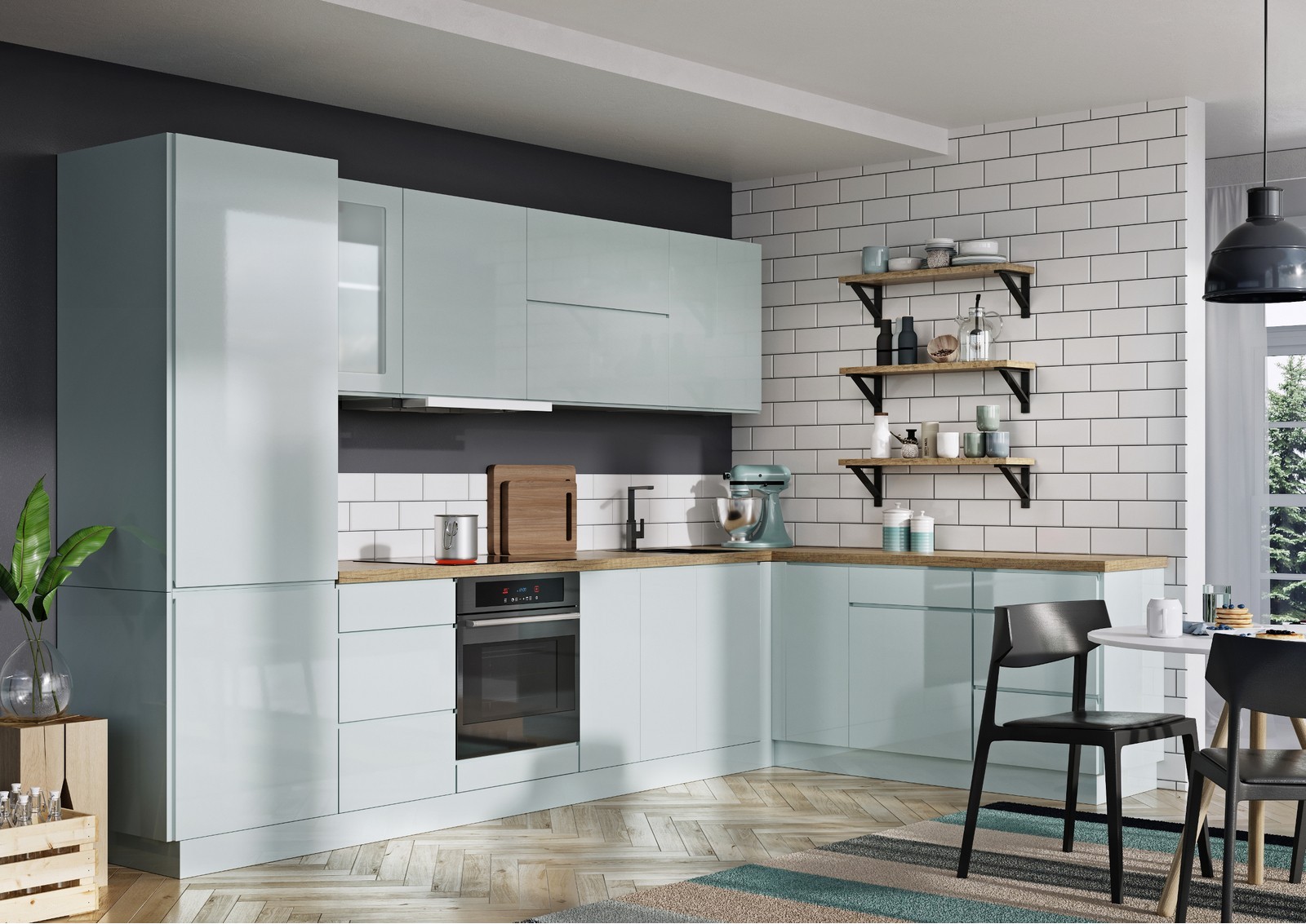 W jakiej kuchni sprawdzą się szafki z kolekcji Vegas Blue? To idealne rozwiązanie dla osób, które cenią sobie proste, a jednocześnie wysmakowane wzory. Lakierowane szafki wykończone na wysoki połysk w delikatnym niebieskim odcieniu sprawdzą się przede wszystkim w kuchni urządzonej w stylu nowoczesnym, np. malowanej na mocny kolor lub zawierającej elementy wykonane z naturalnych materiałów: drewna, cegły czy kamienia. W trosce o komfort naszych klientów zadbaliśmy o odpowiednią jakość zawiasów i prowadnic - wszystkie wyposażone są w system cichego domykania, co znacznie wydłuża żywotność mechanizmu.