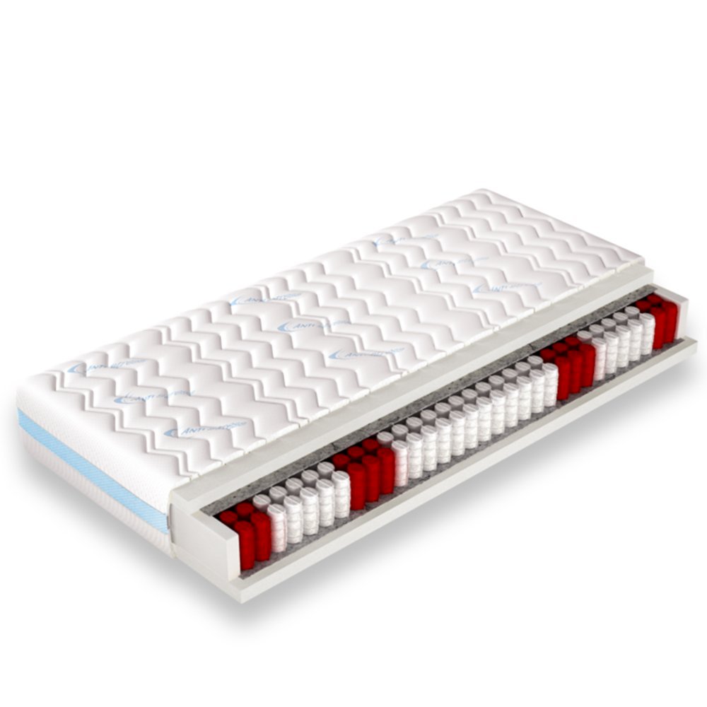 Przedmiotem oferty jest materac dwustronny, twardy, kieszeniowy Catania. Zastosowanie sprężyn kieszeniowych, które działają niezależnie od siebie uginając się w uciskanych miejscach sprawia, że materac ten dostosowuje się do kształtu ciała. Kręgosłup ma również zapewnione przez cały czas odpowiednie podparcie, co zwiększa jakość snu. Dzięki 7 strefom twardości materac dba o miejsca takie jak krzyż czy ramiona, które potrzebują większej troski. Materiały wysokiej klasy z których wykonano produkt są gwarancją jego trwałości przez wiele lat. Jeżeli cenisz sobie świetną jakość i zdrowy odpoczynek ten materac to rozwiązanie dla Ciebie. W zestawie znajduje się praktyczny, zdejmowany (np. do prania) pokrowiec Primo (na zdjęciu w pokrowcu Antistress).