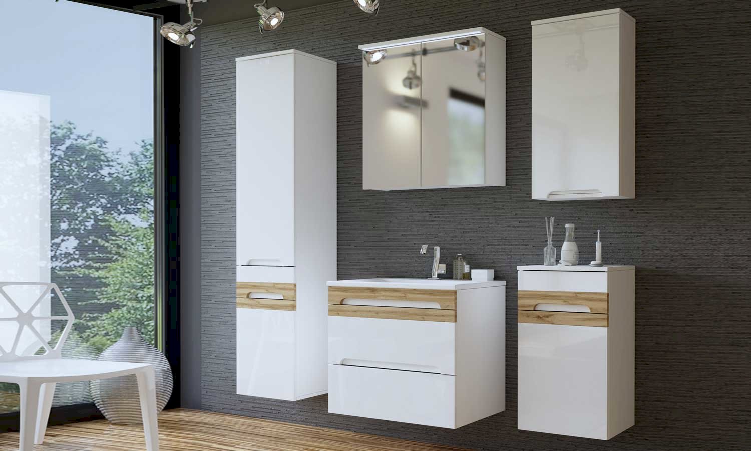 Nowoczesność, prosta forma i styl to tylko niektóre cechy wyróżniające kolekcję mebli łazienkowych Galaxy. W kolekcji znajdziemy wiele szafek w różnych rozmiarach, dzięki czemu każdemu uda się skomponować zestaw pasujący do własnego wnętrza. Meble łazienkowe z serii Galaxy charakteryzują się białymi frontami które zostały dodatkowo prze frezowane dla uzyskania efektu głębi. Oprócz szafki pod umywalkę i szafki wysokiej w serii znajdują się również szafka z lustrem posiadająca bardzo funkcjonalne oświetlenie LED. Kolekcja mebli łazienkowych Galaxy z pewnością przypadnie do gustu osobom ceniącym niebanalne rozwiązania.