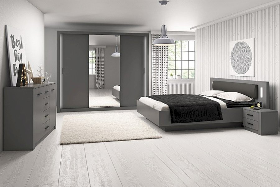 Stilo to idealne rozwiązanie łączące styl i funkcjonalność. Ciemna kolorystyka szarego grafitu, sprawi, że Twoja sypialnia zyska niepowtarzalnego klimatu.