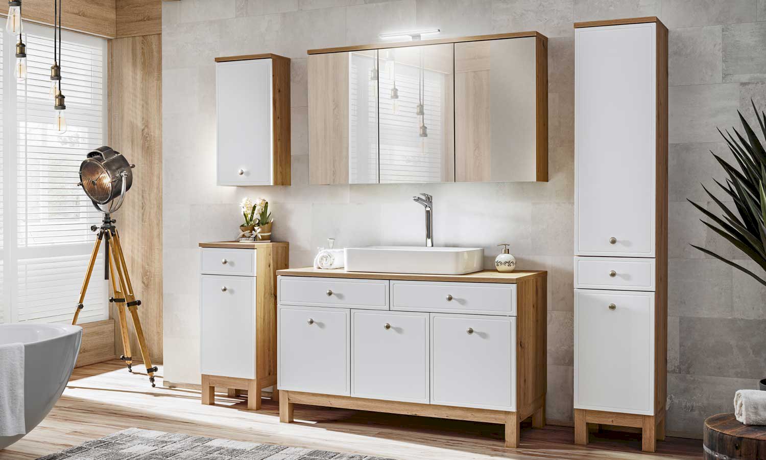 Kolekcja Samoa to odświeżona klasyka w rodzinie naszych mebli łazienkowych. Białe, matowe, frezowane fronty połączone z dębem Artisan tworzą kolekcję przytulną, szykowną i elegancką. Kolekcja Samoa jest linią dla wymagających. Cechuje ją precyzja, szyk i elegancja. Została zaprojektowana w myśl najnowszych trendów wnętrzarskich. Do mebli Samoa dedykowane są umywalki nablatowe. Nie ma możliwości montażu umywalek wpuszczanych. W skład kolekcji wchodzą słupki niskie, wysokie, szafki wiszące, szafki pod umywalkę oraz szafki lustrzane