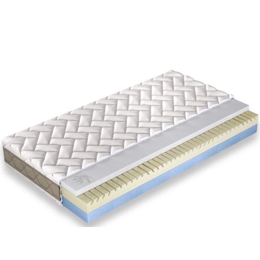 Materac Agostino dopasowuje się do leżącej na nim osoby, dobrze wspiera kręgosłup i inne krzywizny ciała. To dzięki zastosowaniu specjalnych nacięć w środkowej warstwie z pianki wysokoelastycznej. Podział aż na 7 stref twardości dla głowy, barków, lędźwi, miednicy, ud, łydek i stóp zapewnia maksymalny komfort. Dzięki temu Agostino ma właściwości ortopedyczne: poprawia krążenie krwi, rozluźnia mięśnie, pomaga zachować naturalną linię kręgosłupa. Podobnie jak w przypadku pozostałych materacy z kolekcji New Style, Agostino został wykończony z najwyższą dbałością o detale. Cały obwód obszyto elegancką tkaniną tapicerską z domieszką lnu, pikowaną włóknem klimatyzującym.
