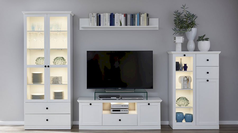 Potrzebujesz mebli do salonu utrzymanych w tradycyjnym stylu? Kolekcja Brandson to odpowiedź na Twoje potrzeby. Białe meble z delikatnie zaznaczonym uchwytem świetnie sprawdzą się zarówno w pomieszczeniach jasnych, jak i na tle mocnych, żywych kolorów, które gwarantują wykończenie o jakim marzysz. Stylowe witryny z ozdobnym wieńcem górnym wyeksponują porcelanę i inne dodatki wszędzie tam gdzie liczy się szyk i elegancja.