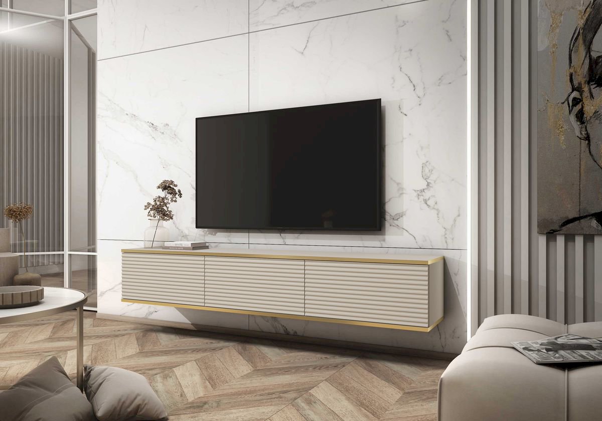 Jakiej wielkości telewizor pasuje do szafki RTV Oro 175? Szerokość 175 cm pozwala ustawić telewizor o dużej przekątnej, zachowując miejsce na dodatkowy sprzęt.