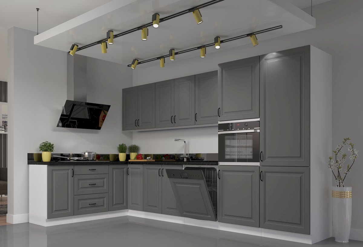Kolekcja mebli Stilo Dust Grey + Biały Mat to oaza nowoczesności i funkcjonalności w sercu Twojego domu. Korpus z solidnej białej płyty laminowanej to fundament niezawodnej trwałości, podczas gdy front z eleganckiego MDF w odcieniu Dust Grey z frezem STILO dodaje całej kuchni wyrazistego charakteru.