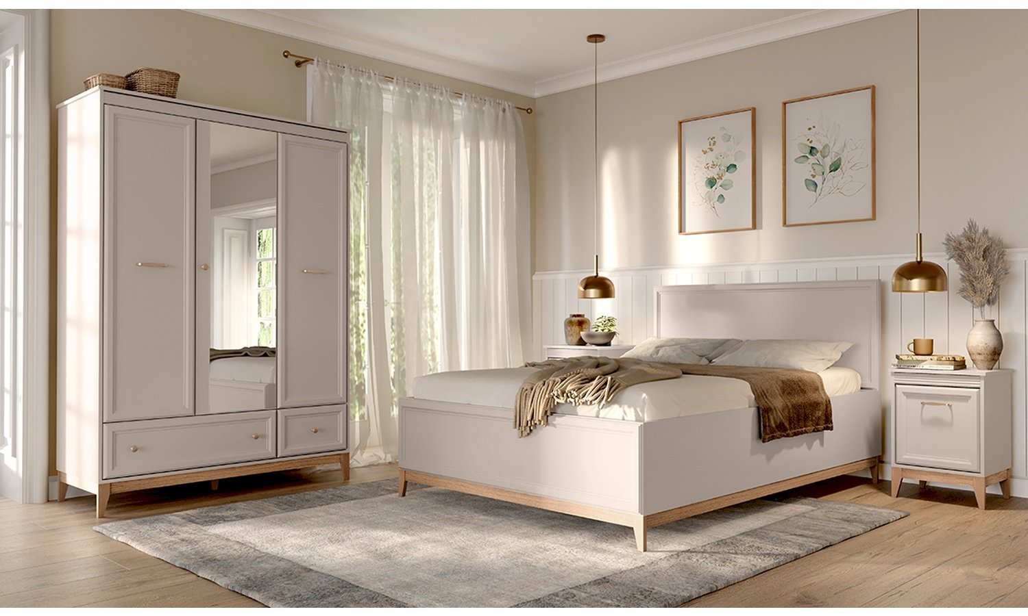 Kolekcja Windsor to wyjątkowa linia mebli od Jarstol, która łączy ponadczasowy styl klasyczny z nowoczesną funkcjonalnością. Projekt inspirowany jest harmonią i elegancją, dzięki czemu meble Windsor wnoszą do wnętrz spokój, ciepło i estetyczną równowagę. Stonowana kolorystyka w odcieniu kaszmiru wraz z naturalnymi, drewnianymi akcentami tworzy uniwersalną bazę aranżacyjną, która doskonale komponuje się zarówno z klasycznymi, jak i współczesnymi stylami wnętrzarskimi. Detale takie jak subtelne frezowania frontów, minimalistyczne uchwyty oraz starannie dobrane proporcje podkreślają elegancję kolekcji, nie przytłaczając przestrzeni. Meble z serii Windsor są nie tylko piękne, ale też praktyczne w codziennym użytkowaniu – oferują pojemne szuflady, przestronne schowki i komfortowy system cichego domyku. W ofercie znajdziesz różnorodne elementy: od komód, witryn i szafek RTV, po garderoby i meble do sypialni – wszystkie zaprojektowane z myślą o stworzeniu spójnej i funkcjonalnej przestrzeni w Twoim domu. Kolekcja Windsor to idealna propozycja dla osób, które cenią tradycyjny design z nowoczesnym twistem – meble, które tworzą wnętrze pełne stylu, komfortu i trwałej jakości.