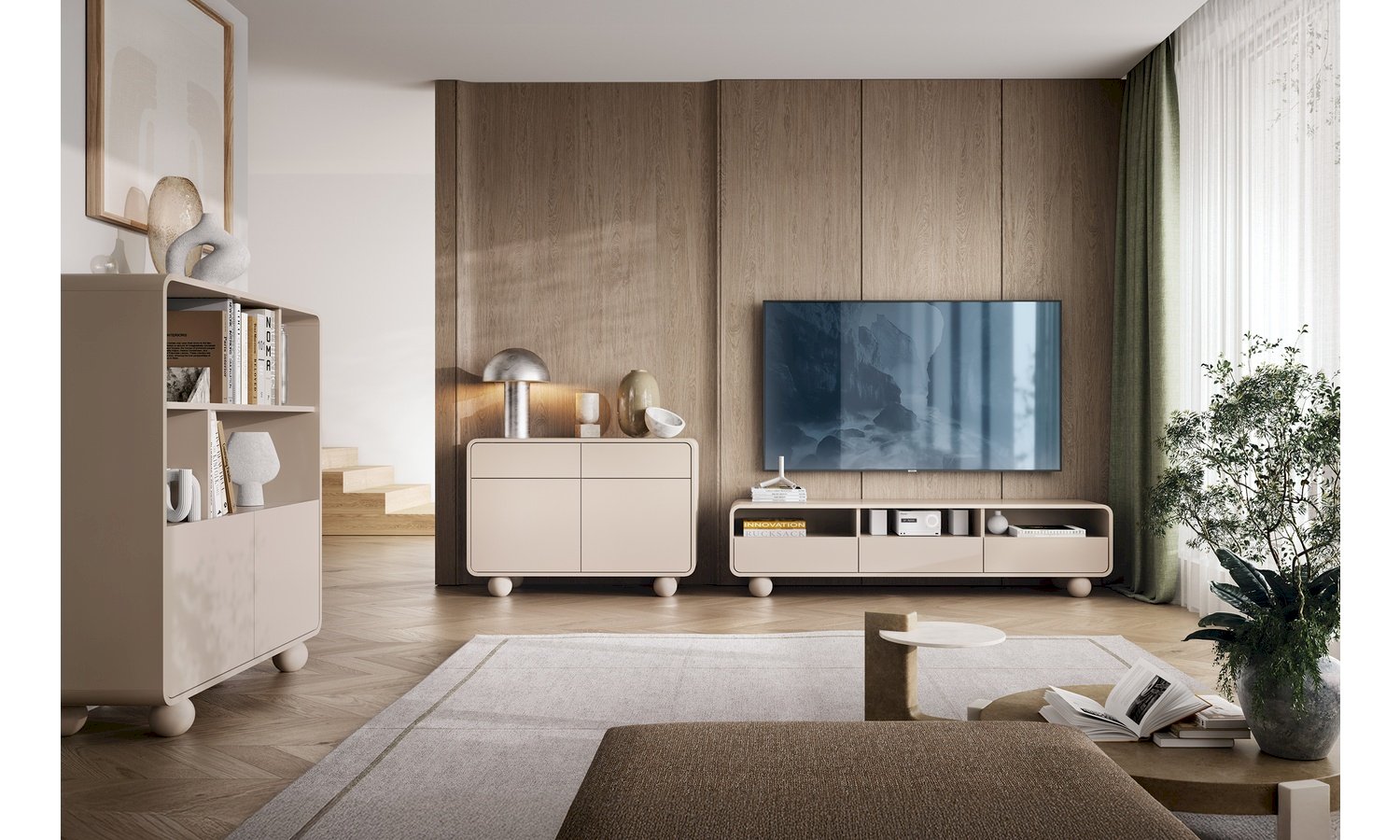 Kolekcja Albion to wyjątkowa linia mebli skrzyniowych od Piaski, która łączy minimalistyczną formę z subtelnym, geometrycznym designem. Charakterystyczne obłe, miękkie kształty i kuliste nóżki nadają kolekcji lekkości i nowoczesnej elegancji, dzięki czemu meble Albion idealnie wpisują się w aktualne trendy wnętrzarskie. Projektowana z myślą o praktyczności oraz estetyce, kolekcja Albion oferuje komody, szafki RTV, szafkę nocną i regał w uniwersalnym kolorze kaszmir, który doskonale komponuje się z różnymi stylami aranżacji wnętrz – od skandynawskiego po nowoczesny loft. Meble Albion sprawdzą się zarówno w salonie, jadalni, jak i w przestrzeni dziennej czy gabinetowej, zapewniając dużą funkcjonalność przechowywania, wysoki standard wykonania i ponadczasowy design z polskim rodowodem.