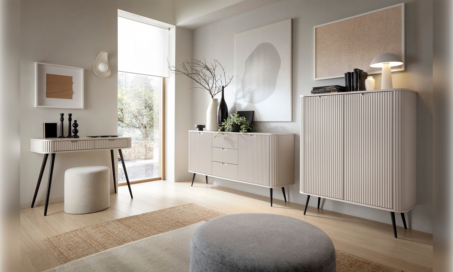Kolekcja Zova to propozycja dla osób, które cenią nowoczesny design, subtelną elegancję i możliwość personalizacji detali. Minimalistyczne bryły zestawione z dekoracyjnymi nóżkami w kolorze czarnym lub złotym tworzą meble, które doskonale odnajdują się zarówno w aranżacjach glamour, jak i nowoczesnych czy modern classic. Meble Zova dostępne są w trzech ponadczasowych kolorach: czarnym – wyrazistym i eleganckim, białym – lekkim i uniwersalnym oraz kaszmirowym – modnym, ciepłym i subtelnym. Dzięki możliwości wyboru koloru nóżek (czarne lub złote), kolekcja pozwala dopasować charakter mebla do indywidualnego stylu wnętrza. Smukłe, wysokie podstawy nadają bryłom lekkości, a jednocześnie ułatwiają utrzymanie czystości pod meblami. Kolekcja Zova obejmuje: toaletkę, szafkę RTV oraz komody. To kompleksowa linia, która pozwala stworzyć spójną aranżację salonu, sypialni lub strefy dziennej.