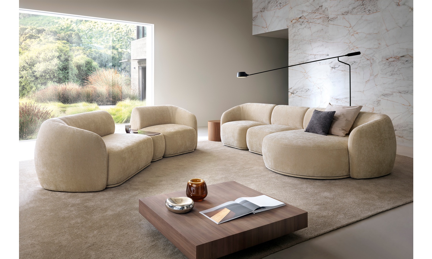 Narożnik modułowy Noboto kwintesencja nowoczesnego designu i komfortu, zaprojektowana z myślą o współczesnych, minimalistycznych wnętrzach. Jego miękkie, organiczne linie oraz subtelna, elegancka forma sprawiają, że doskonale wpisuje się w aranżacje inspirowane stylem modern, japandi czy soft loft. Dzięki modułowej konstrukcji możesz dopasować układ narożnika do wielkości pomieszczenia i własnych potrzeb, tworząc przestrzeń idealną do wypoczynku i spotkań z bliskimi.ModelNobowyróżnia się wyjątkową wygodą użytkowania. Siedziska wykonane zostały z połączenia wysokoelastycznej pianki HR oraz pianki PUR, które zapewniają optymalne podparcie ciała, sprężystość oraz odporność na odkształcenia. Całość konstrukcji wsparta jest na solidnych pasach tapicerskich, które zwiększają trwałość i komfort codziennego użytkowania.To propozycja dla osób ceniących estetykę premium oraz funkcjonalną prostotę. Narożnik nie posiada funkcji spania ani pojemnika na pościel, dzięki czemu zachowuje lekką, designerską formę oraz maksymalny komfort siedzenia. Neutralna kolorystyka i subtelna faktura tapicerki doskonale komponują się z naturalnymi materiałami takimi jak drewno, kamień czy szkło, tworząc harmonijną przestrzeń relaksu.