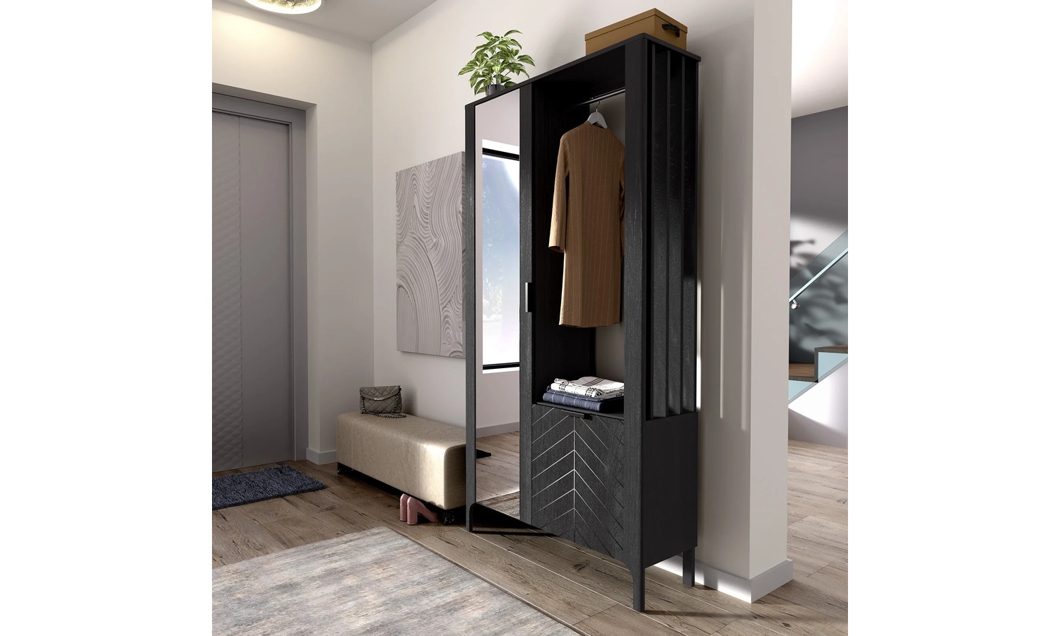 Odkryj wyjątkową garderobę Malumi Painflow w eleganckim czarnym wykończeniu – idealne rozwiązanie do nowoczesnych i stylowych wnętrz. Minimalistyczna forma w połączeniu z subtelnymi detalami sprawia, że mebel doskonale wpisuje się zarówno w aranżacje skandynawskie, loftowe, jak i klasyczne. Garderoba została zaprojektowana z myślą o maksymalnej funkcjonalności. Praktyczne lustro optycznie powiększa przestrzeń i pozwala na szybkie sprawdzenie stylizacji przed wyjściem z domu. Wnętrze oferuje wygodne miejsce na okrycia wierzchnie, a dodatkowa szafka zapewnia przestrzeń do przechowywania akcesoriów, butów lub torebek. Smukła konstrukcja sprawia, że garderoba świetnie sprawdzi się nawet w mniejszych przedpokojach.Czarny kolor nadaje całości ponadczasowego charakteru i podkreśla elegancję wnętrza, a jednocześnie jest praktyczny w codziennym użytkowaniu. To doskonały wybór dla osób ceniących porządek, estetykę i wysoką jakość wykonania.Wybierz garderobę Malumi Painflow i stwórz funkcjonalną, stylową przestrzeń już od progu swojego domu.