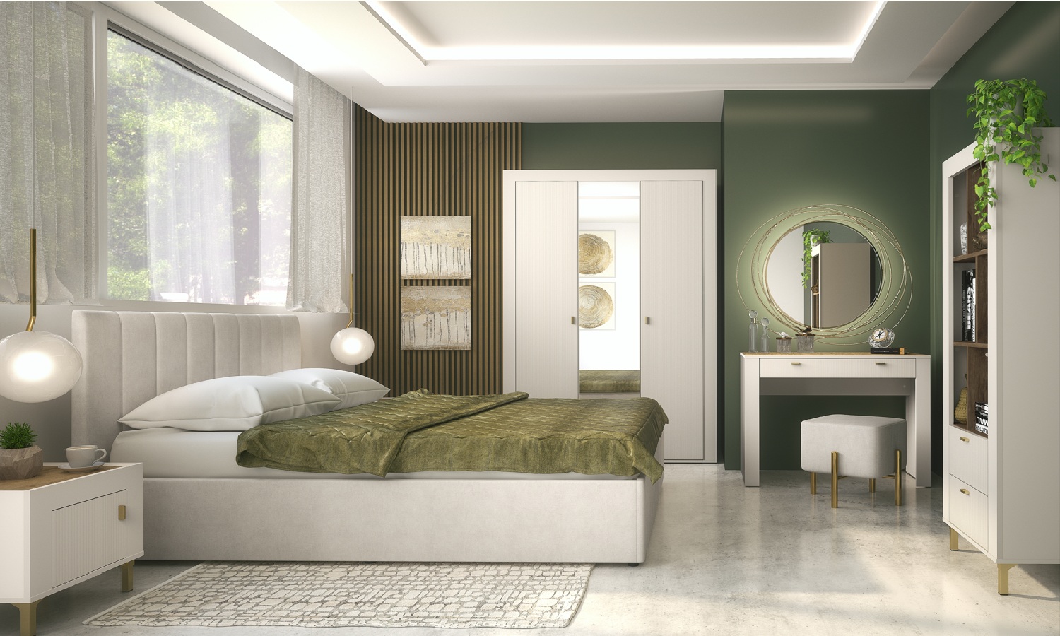 Kolekcja MOSSAto harmonijne połączenie nowoczesnego designu, subtelnej elegancji i funkcjonalności, które idealnie wpisuje się w aktualne trendy wnętrzarskie. Meble w delikatnym, ciepłym odcieniukaszmiruwprowadzają do wnętrza spokój i ponadczasowy styl, natomiast akcenty w dekorzedąb whiskydodają całości głębi i przytulnego charakteru.Proste, geometryczne formy zestawione z miękkimi liniami oraz starannie dobranymi detalami – jak złote uchwyty czy subtelne wykończenia – tworzą kolekcję, która doskonale odnajdzie się zarówno w nowoczesnych, jak i bardziej klasycznych aranżacjach. MOSSA to propozycja dla osób, które cenią estetykę, ale nie chcą rezygnować z wygody codziennego użytkowania.W skład kolekcji wchodzą m.in. łóżka, szafki nocne, komody, szafy oraz toaletki, które pozwalają kompleksowo urządzić sypialnię lub strefę wypoczynku. Przemyślane rozwiązania przechowywania oraz wysoka jakość wykonania sprawiają, że meble MOSSA są nie tylko piękne, ale i praktyczne.To kolekcja, która tworzy spójną, elegancką przestrzeń sprzyjającą relaksowi i wyciszeniu.