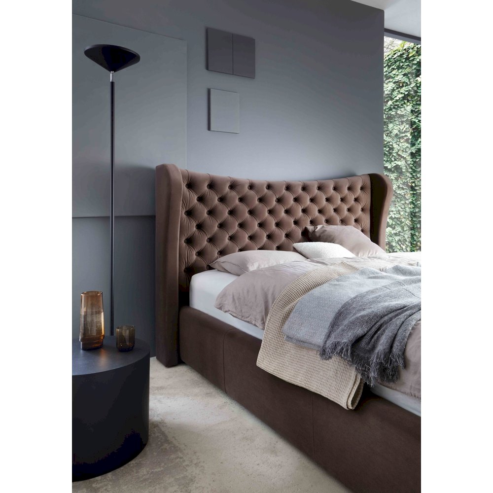 Lancaster to jedno z najbardziej wyrazistych łóżek w rodzinie Comforteo. Połączenie nowoczesnego i klasycznego designu pozwoliło uzyskać efekt niewymuszonej elegancji. Dzięki temu łóżko z powodzeniem wprowadzimy do sypialni urządzonej zarówno w dostojnym stylu angielskim, jak i w surowym stylu loftowym. Głębokie piki efektownie współgrają z wezgłowiem z krawędziami fantazyjnie skierowanymi do wewnątrz. Unikatowy design Lancastera sprawia, że łóżko świetnie prezentuje się w obiciu zarówno w intensywnych, jak i stonowanych kolorach. Wysokość wezgłowia, kształty płóz oraz wysokość nóżek nie podlegają personalizacji.