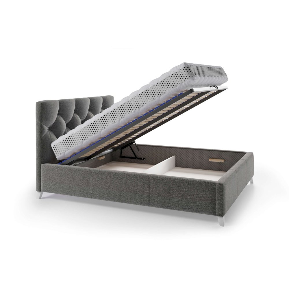 Łóżko Kasandra sprawdzi się zwłaszcza w sypialniach urządzonych kobiecą ręką, u dorastającej córki, albo tam, gdzie króluje styl angielski czy francuski. W zależności od koloru wybranej tkaniny może ona ożywić Twoje wnętrze lub wprowadzić do niego błogi spokój. Można dokompletować łóżko pojemnikiem na pościel (otwieranym od frontu, z wygodnymi podnośnikami gazowymi i stelażem) lub z samym tylko stelażem. W tym modelu ustalony jest jeden wariant, bez możliwości personalizacji: wysokości wezgłowia, kształtu płóz oraz wysokości nóżek.