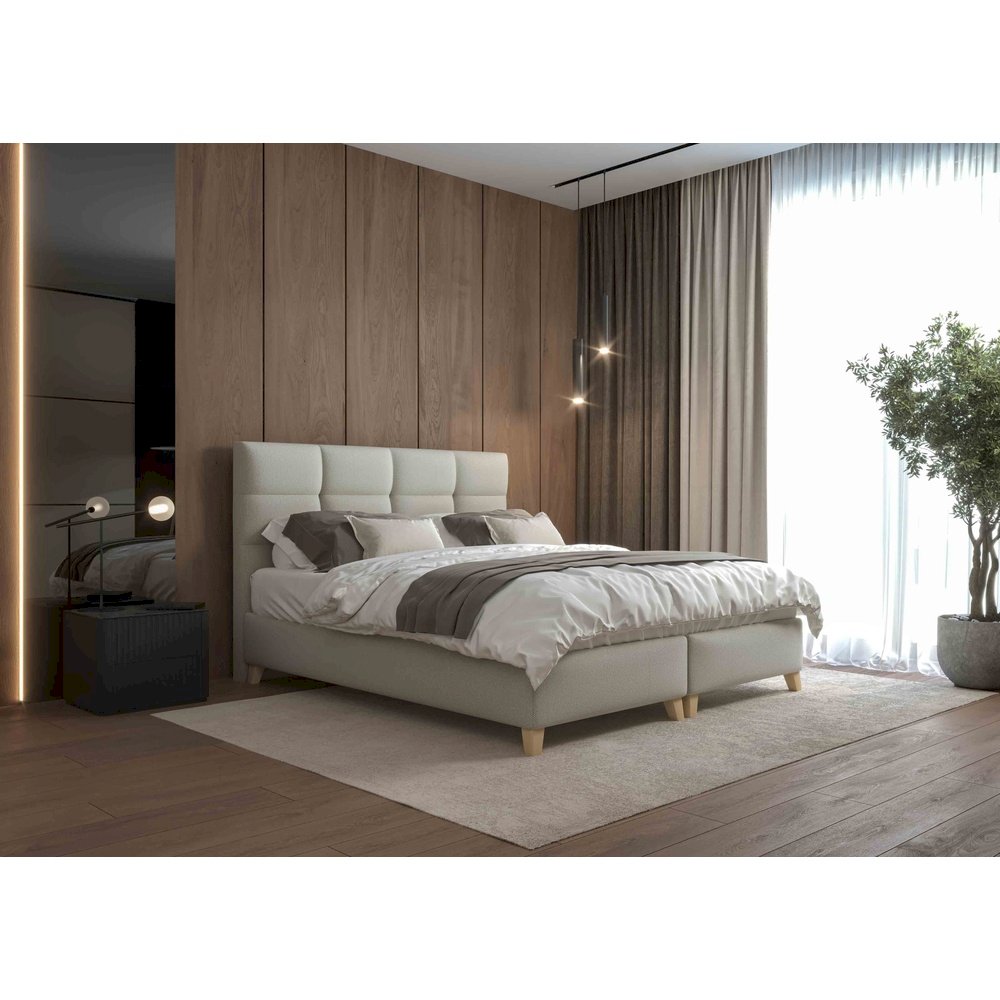 Efektowne łóżko tapicerowane z wyrazistym zagłówkiem. Głębokie wciągi nadają mu dostojności. Dzięki temu, ze rama łóżka licuje się z materacem, cała bryła nabiera odpowiednich proporcji. Mona świetnie wkomponuje się zarówno w minimalistyczne jak i w eleganckie, bogato urządzone wnętrza. Tkaniny w odważnych odcieniach nadadzą temu łóżku ekspresji, natomiast stonowane odcienie pomogą nam osiągnąć spokój i harmonię w naszej sypialni. Łóżko ma wbudowane dwa pojemniki na pościel, otwierane od przodu, które podnosi się i opuszcza w prosty i bezpieczny sposób dzięki podnośnikom gazowym. Pojemniki posiadają także listwy sprężynujące, uzupełniające elastyczność i komfort wybranego przez Państwo materaca. W tym modelu ustalony jest jeden wariant, bez możliwości personalizacji: nóżek (E10 lub D10), wysokości wezgłowia, kształtu boków.