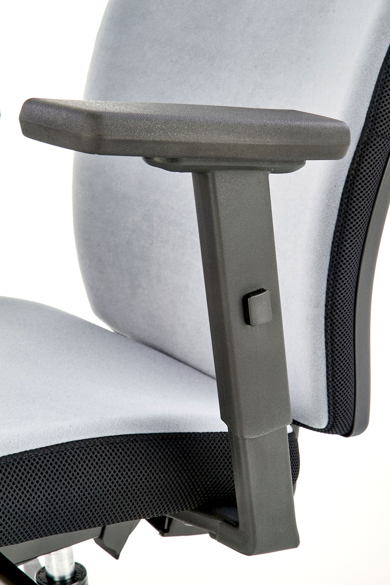 mechanizm synchroniczny, wysuwane siedzisko, regulowane podłokietniki w dwóch płaszczyznach, wymiary: 93-108/68/65/48-63 cm, materiał: tkanina, kolor: czarny / popielaty