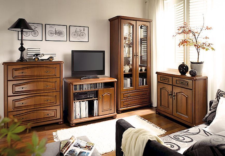System modułowy Natalia to coś dla miłośników tradycyjnych wzorów. Pięknie zdobione fronty jak i uchwyty połączone z ciepłym aksamitnym wybarwieniem mebli sprawi, iż wystrój każdego pomieszczenia będzie przytulny w tradycyjnym stylu. System Natalia składa sie z 29 modułów co nie stanowi problemu w wyposażeniu salonu, jadalni czy tez  sypialni.