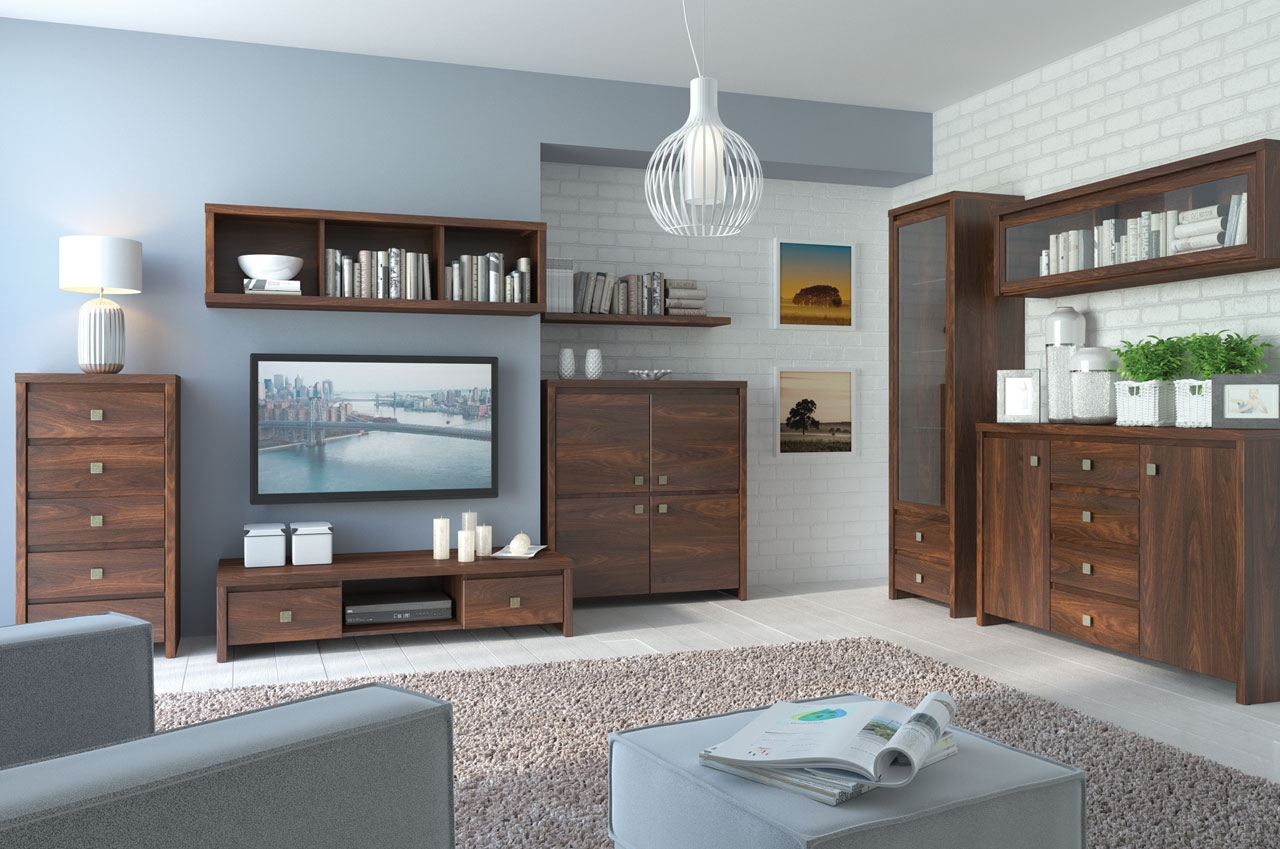 Kolekcja systemu Kaspian II jest kierowana do zwolenników praktycznych i prostych form. Meble w kolorze „dąb durance” z uwypuklonym usłojeniem, który wiernie oddaje wygląd drewna. Kolekcja utrzymana jest w prostej formie brył z pogrubionymi bokami i zdobionymi uchwytami. System modułowy Kaspian II zapewnia nam mnóstwo możliwości na stworzenie nowoczesnych i funkcjonalnych aranżacji salonu czy sypialni.