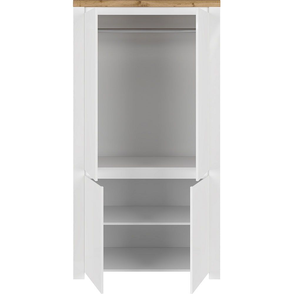 Przedmiotem oferty jest szafa z systemu Vigo, która jest wykonana z wysokiej jakości płyty laminowanej z wzmocnieniami obrzeży ABS. Szafa ta doskonale sprawdzi się zarówno w pokoju dziennym jak i sypialni.