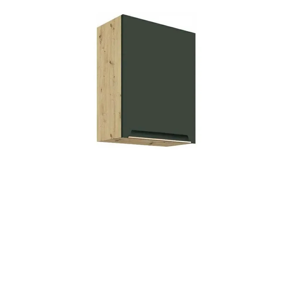 Szafka wisząca Glamour 33G z jednymi frontami daje możliwość personalizacji, umożliwiając wybór spośród trzech kolorów korpusu. Fronty występują w subtelnych odcieniach białego matu, głębokiego granatowego matu oraz świeżego zielonego matu, co pozwala dostosować kuchnię do własnych upodobań.