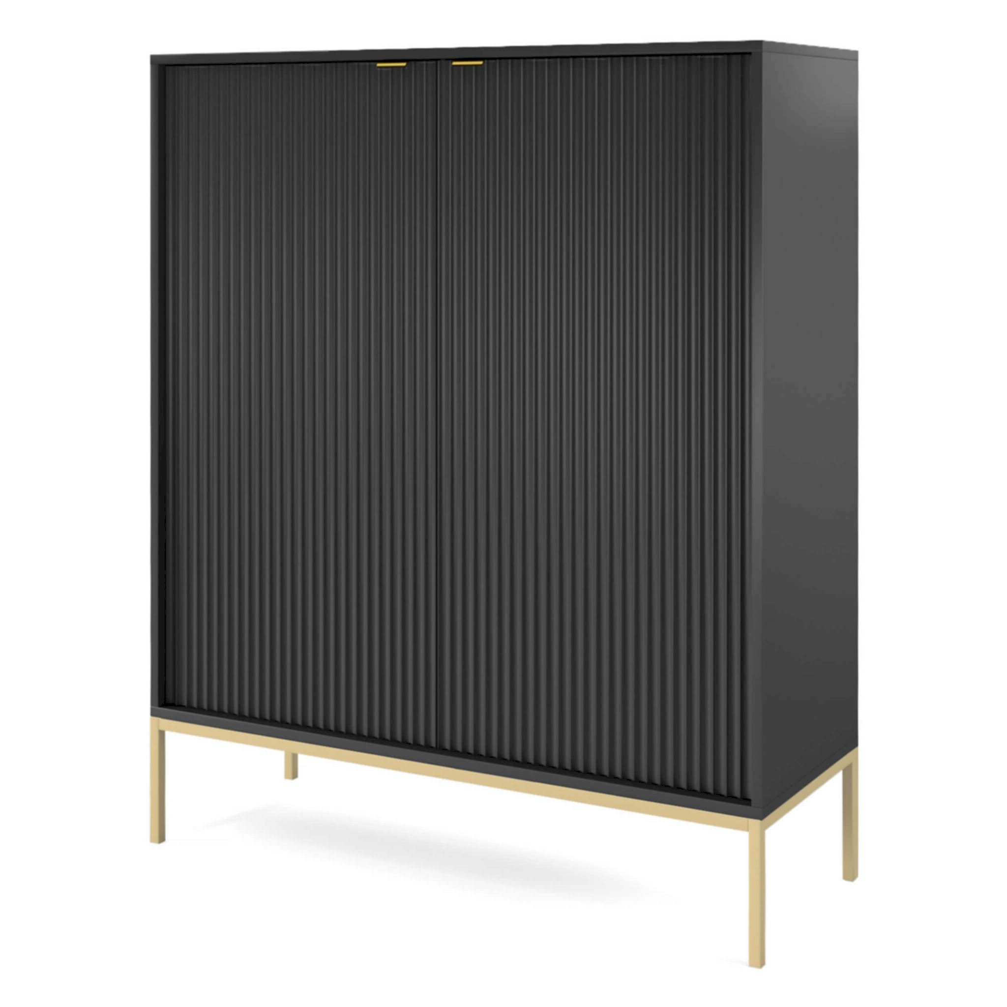 Cechą charakterystyczną dla systemu Nova są złote lub czarne uchwyty na krawędziach pięknych ryflowanych frontach. Kolekcja mebli pokojowych Nova występuje w trzech wersjach kolorystycznych: szarym, czarnym i białym - adekwatnie z kolorami korpusu. Wszystko uniesione na delikatnej podstawie dostępnej w dwóch wersjach kolorystycznych, czarnej oraz złotej.