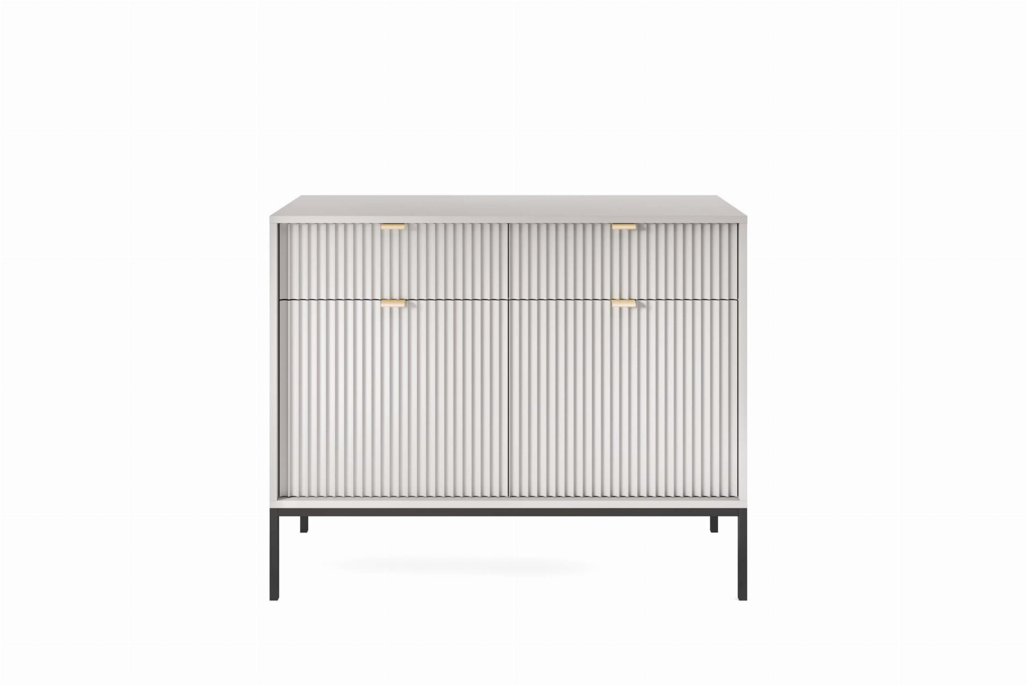 Cechą charakterystyczną dla systemu Nova są złote lub czarne uchwyty na krawędziach pięknych ryflowanych frontach. Kolekcja mebli pokojowych Nova występuje w trzech wersjach kolorystycznych: szarym, czarnym i białym - adekwatnie z kolorami korpusu. Wszystko uniesione na delikatnej podstawie dostępnej w dwóch wersjach kolorystycznych, czarnej oraz złotej.