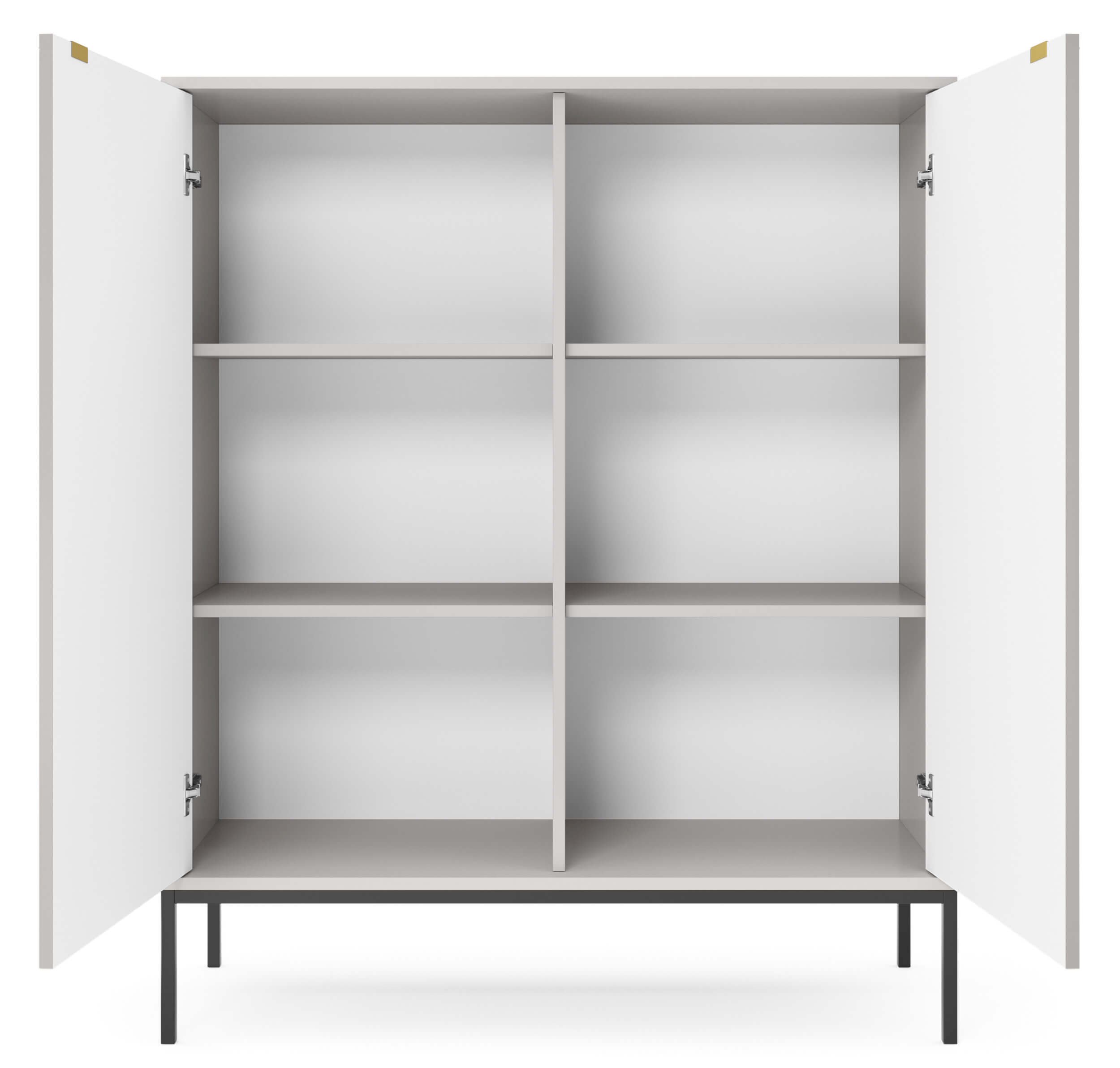 Cechą charakterystyczną dla systemu Nova są złote lub czarne uchwyty na krawędziach pięknych ryflowanych frontach. Kolekcja mebli pokojowych Nova występuje w trzech wersjach kolorystycznych: szarym, czarnym i białym - adekwatnie z kolorami korpusu. Wszystko uniesione na delikatnej podstawie dostępnej w dwóch wersjach kolorystycznych, czarnej oraz złotej.