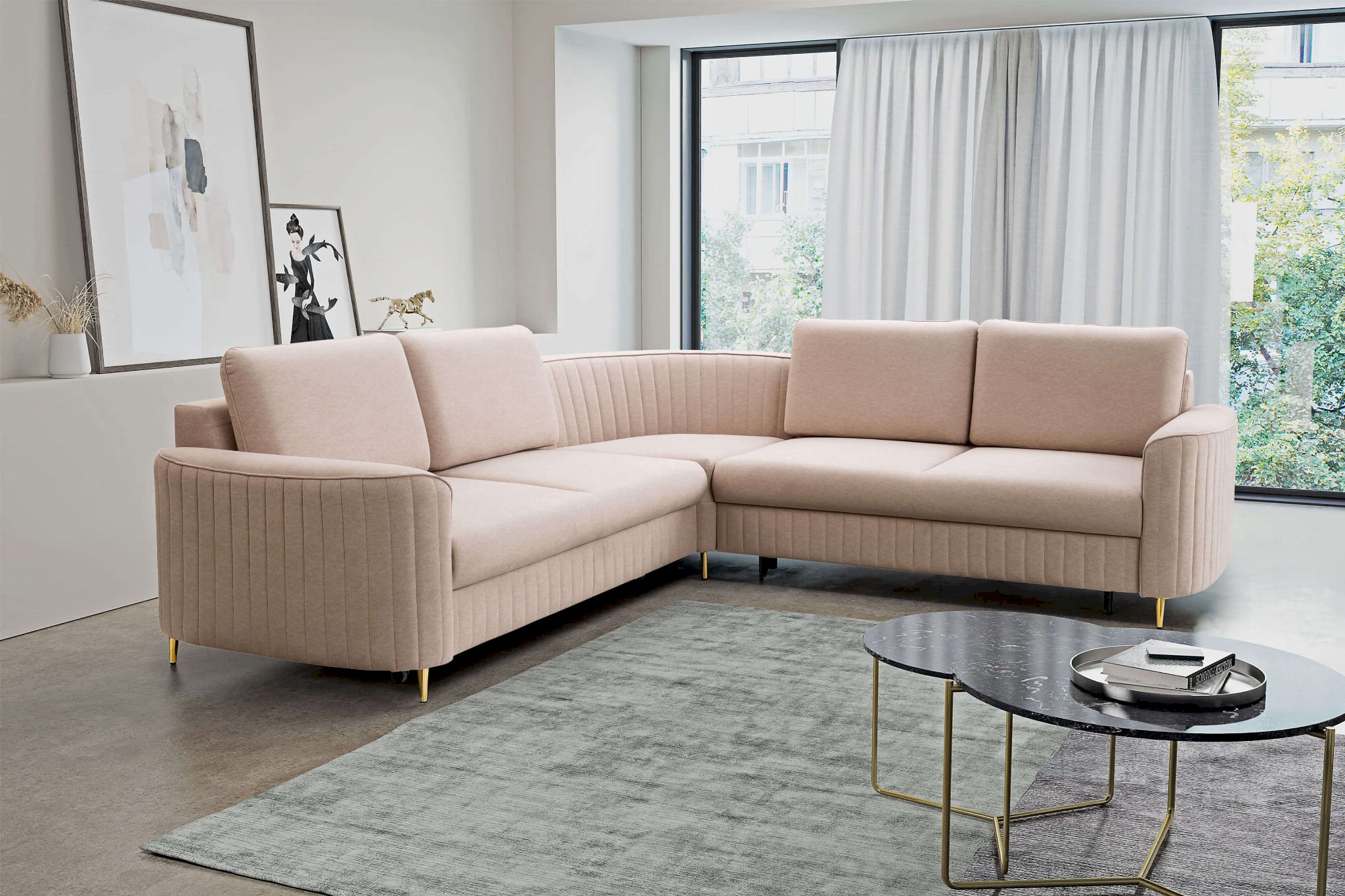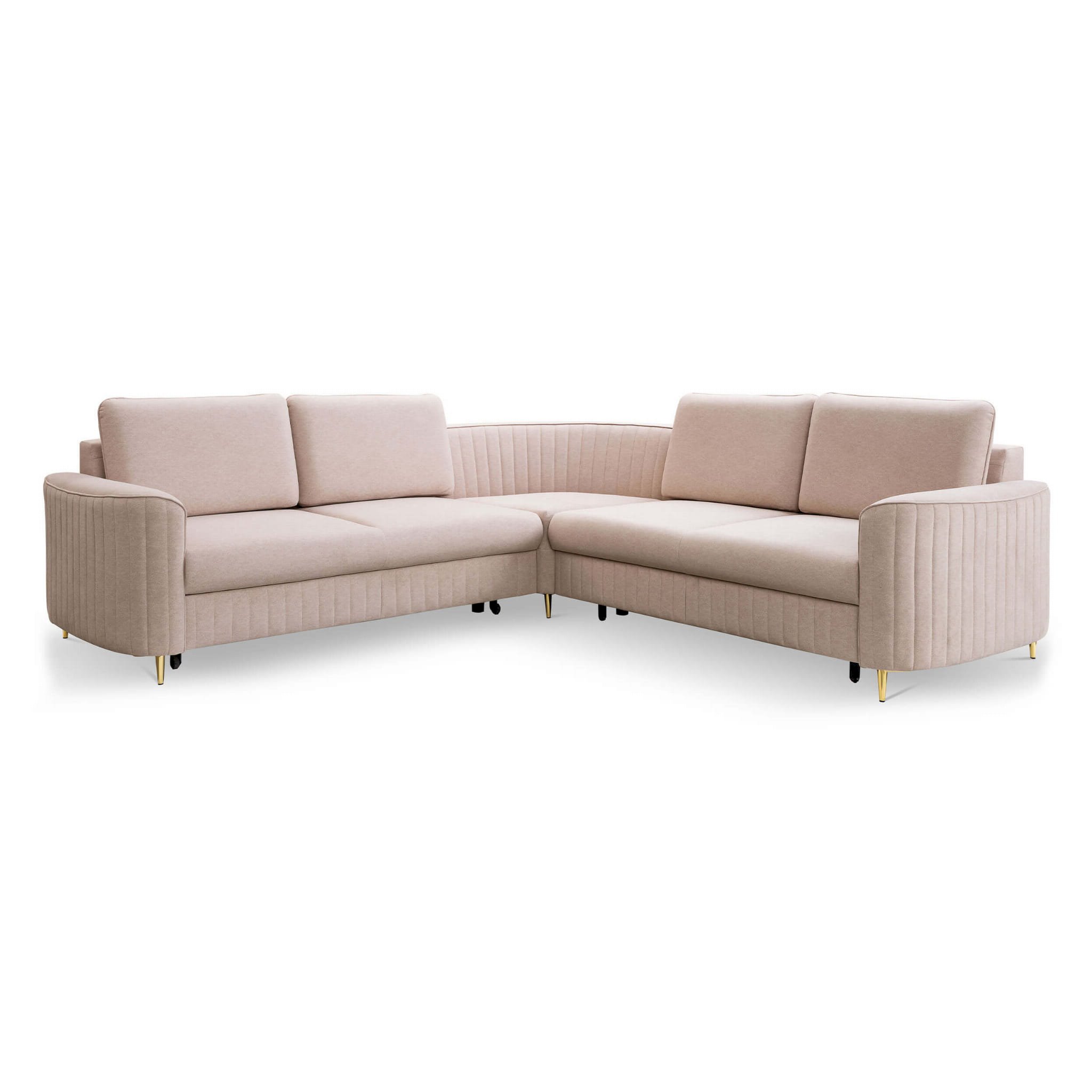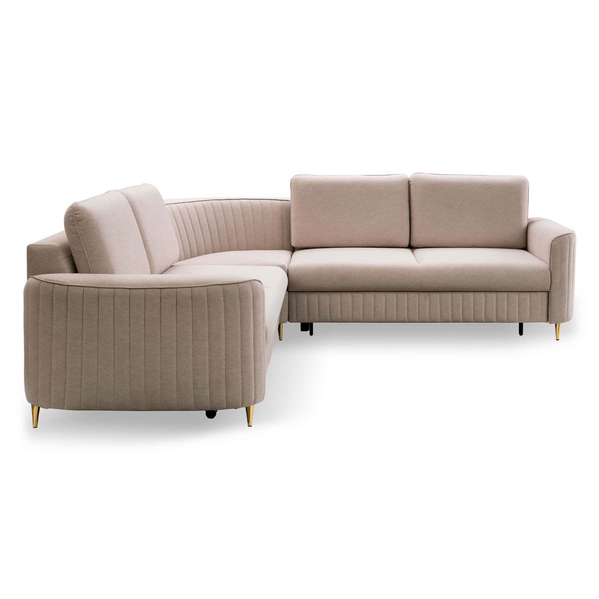 Laren to modny narożnik w stylu glamour na pewno ozdobi nie jeden salon. Złote nogi, piękne przeszycia, zaoblone boki - ten model bedzie zwracał na siebie uwagę.