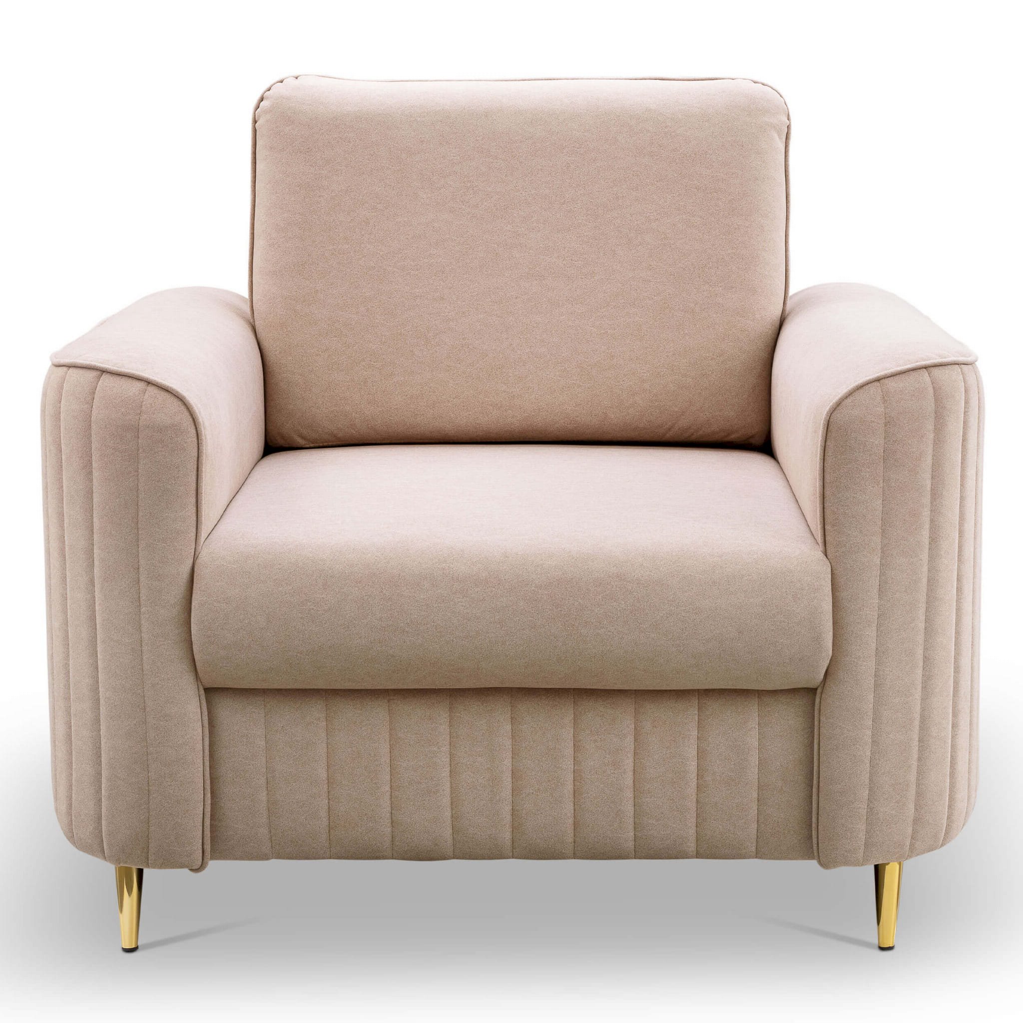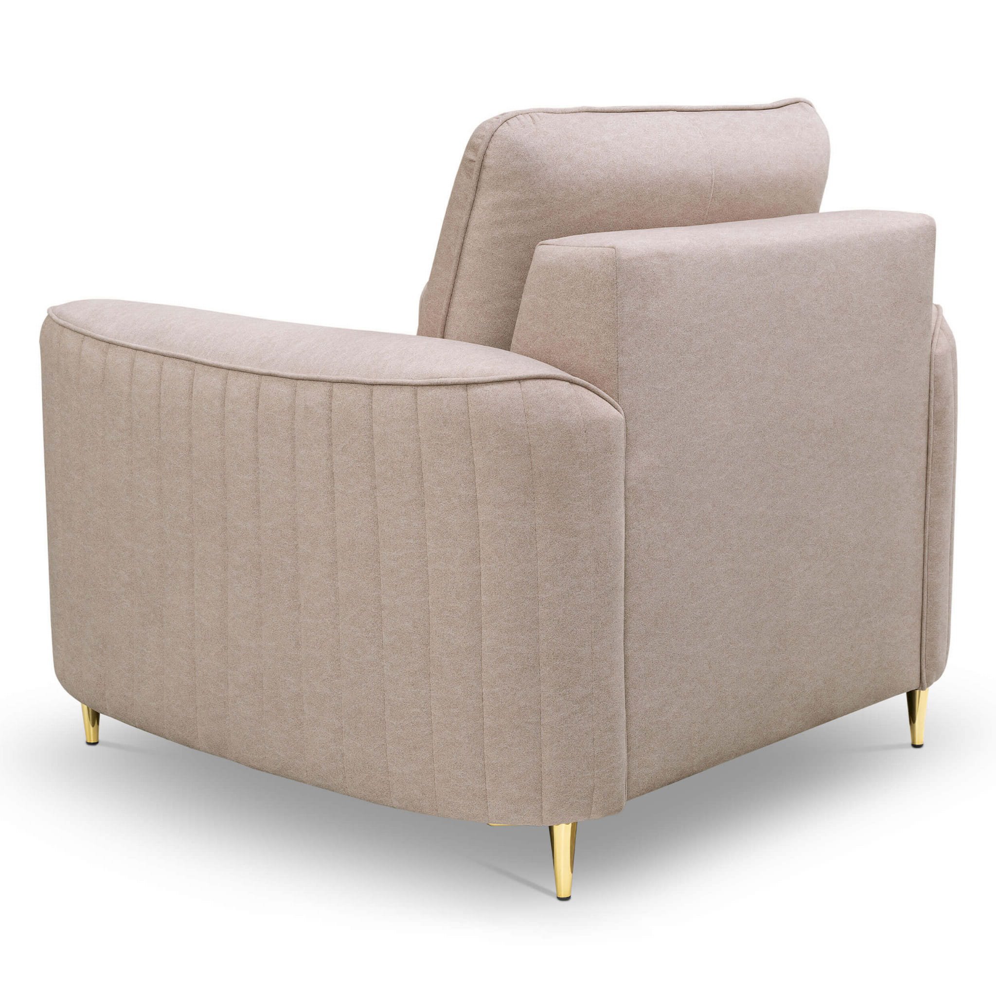 Piekny fotel LAREN z modnymi ozdobnymi przeszyciami. Elegancja i styl podkreślone metalowymi nóżkami w kolorze złotym. Model znajdzie zastosowanie w aranżacjach glamour, zwracając na siebie uwagę.