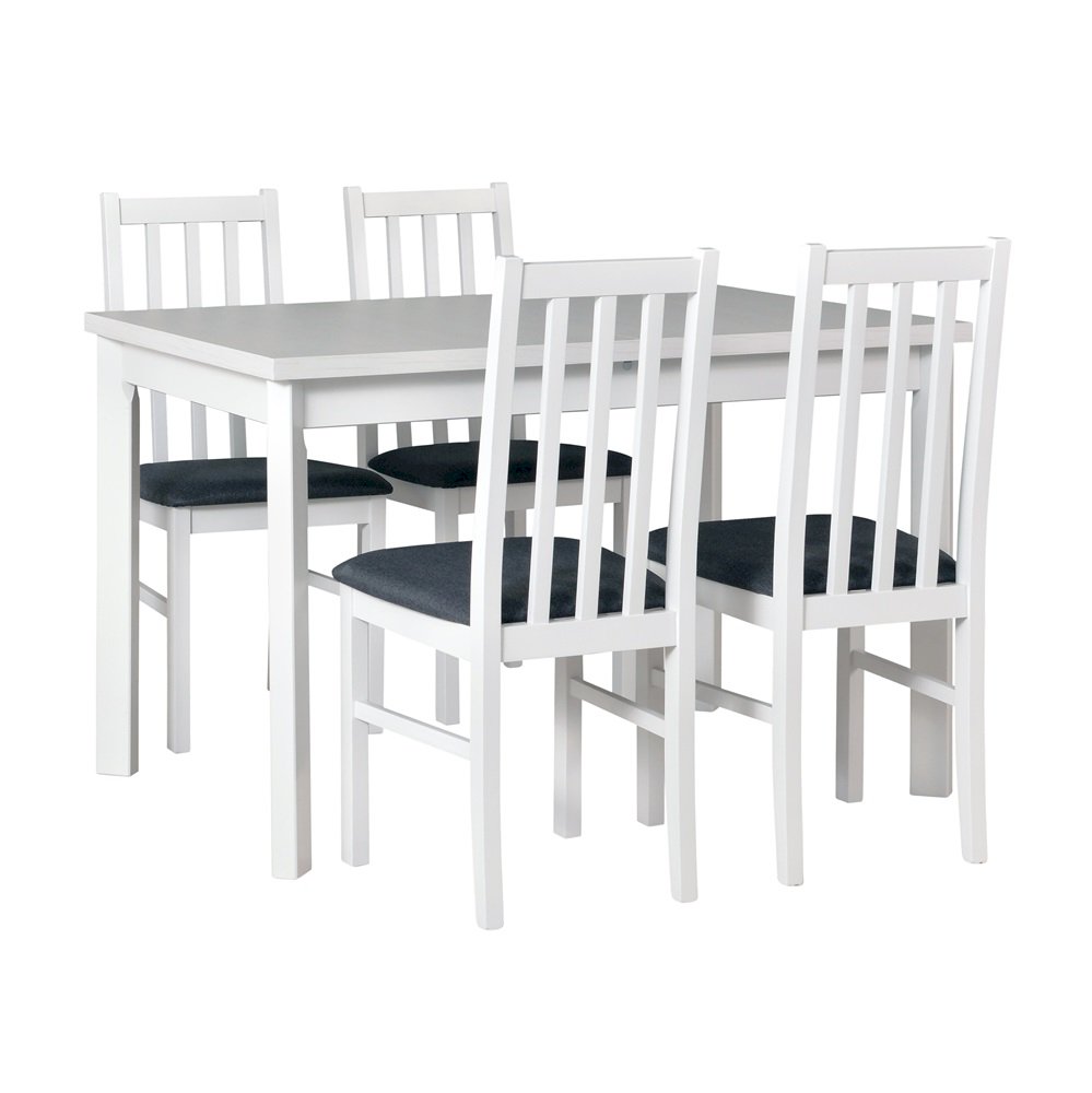 Zestaw stół Max 5P plus cztery krzesła Bos 10 to idealne rozwiązanie do urządzenia stylowej jadalni lub przestronnej kuchni. Blat stołu, wykonany z wytrzymałej płyty laminowanej, zapewnia nie tylko trwałość, ale również łatwość w utrzymaniu czystości, co ułatwia codzienną eksploatację.