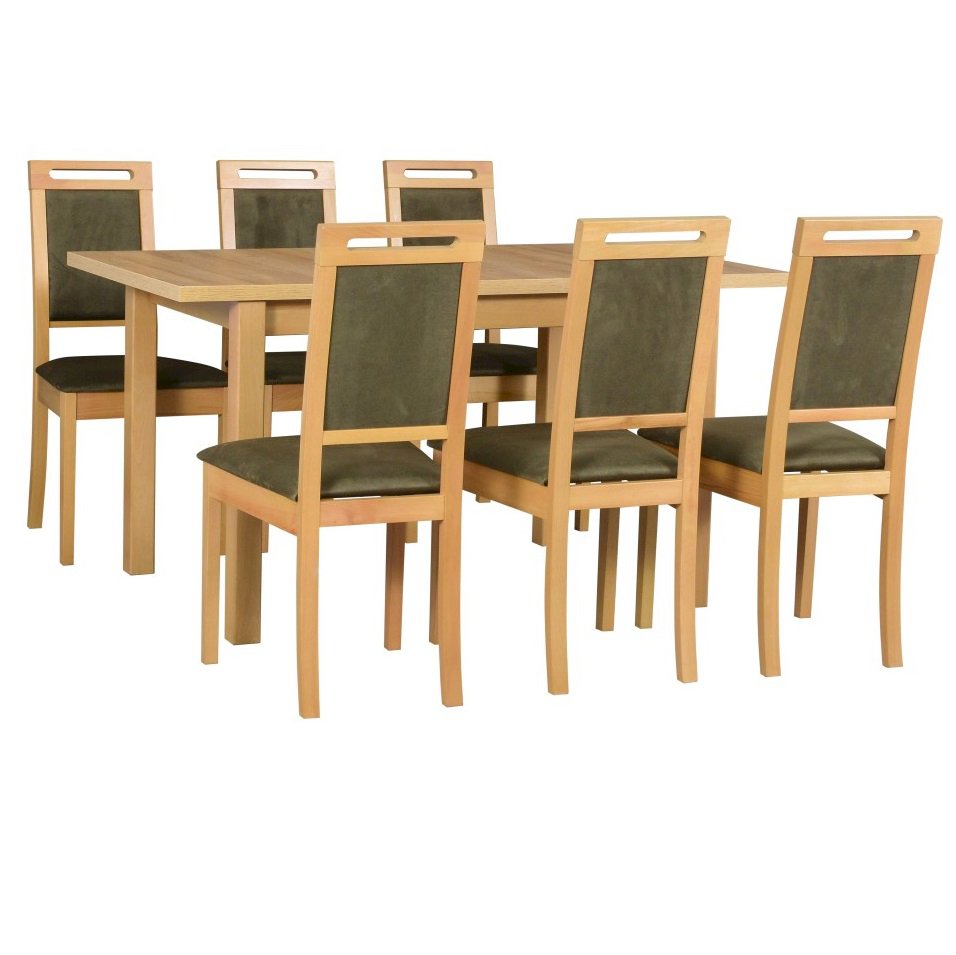 Zestaw stołu laminowanego Modena 1 z bukowymi nogami i sześcioma krzesłami Roma 15 to połączenie elegancji i funkcjonalności. Stół z wytrzymałym blatem laminowanym i solidnymi nogami z drewna bukowego to praktyczne centrum każdej jadalni. Zestaw sześciu krzeseł z bukowym wykończeniem i wygodnymi siedziskami zapewnia komfort podczas posiłków i spotkań. Ta kombinacja mebli doskonale łączy trwałość z estetyką, tworząc przytulne i stylowe miejsce do wspólnych chwil w domu. Idealny wybór dla tych, którzy cenią sobie zarówno jakość wykonania, jak i elegancki wygląd wnętrza.