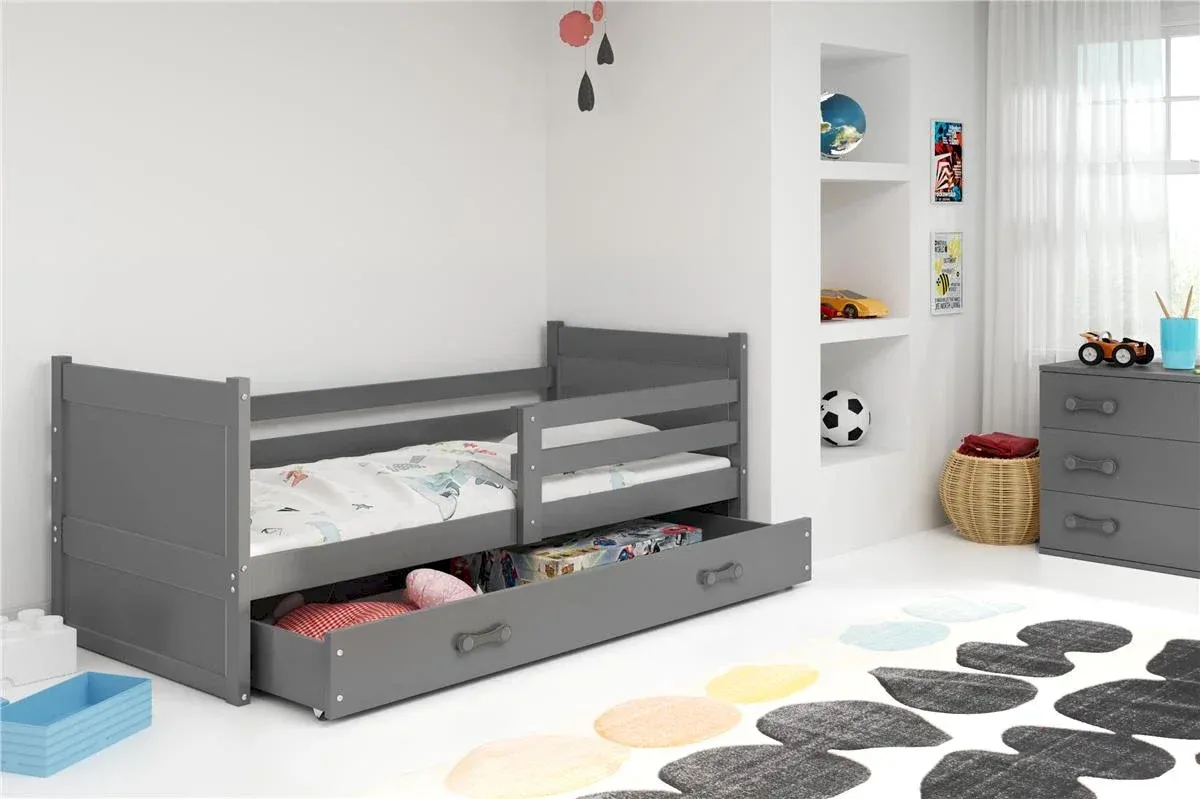 Nasze łóżko dla dziecka RICO to idealne połączenie funkcjonalności i stylu. Wykonane z trwałego drewna sosnowego, o powierzchni spania 80x190 cm, gwarantuje wygodę i bezpieczeństwo. Praktyczna szuflada pomieści pościel czy zabawki, a wysokiej jakości materac zapewni spokojny sen. Dostępne w kolorze białym, grafitowym i sosnowym, łóżko doskonale dopasuje się do każdego wnętrza, tworząc przyjemną przestrzeń dla Twojego dziecka. Stwórz wyjątkowe miejsce do snu i zabawy już dziś!