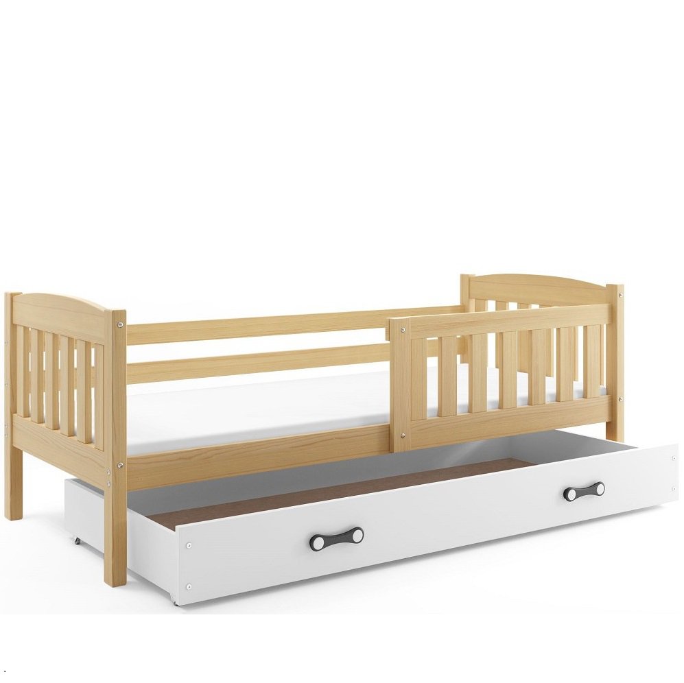 Nasze łóżko dla dziecka Kubuś to idealne połączenie funkcjonalności i stylu. Wykonane z trwałego drewna sosnowego, o powierzchni spania 90x200 cm, gwarantuje wygodę i bezpieczeństwo. Praktyczna szuflada pomieści pościel czy zabawki, a wysokiej jakości materac zapewni spokojny sen. Dostępne w kolorze białym, grafitowym i sosnowym, łóżko doskonale dopasuje się do każdego wnętrza, tworząc przyjemną przestrzeń dla Twojego dziecka. Stwórz wyjątkowe miejsce do snu i zabawy już dziś!