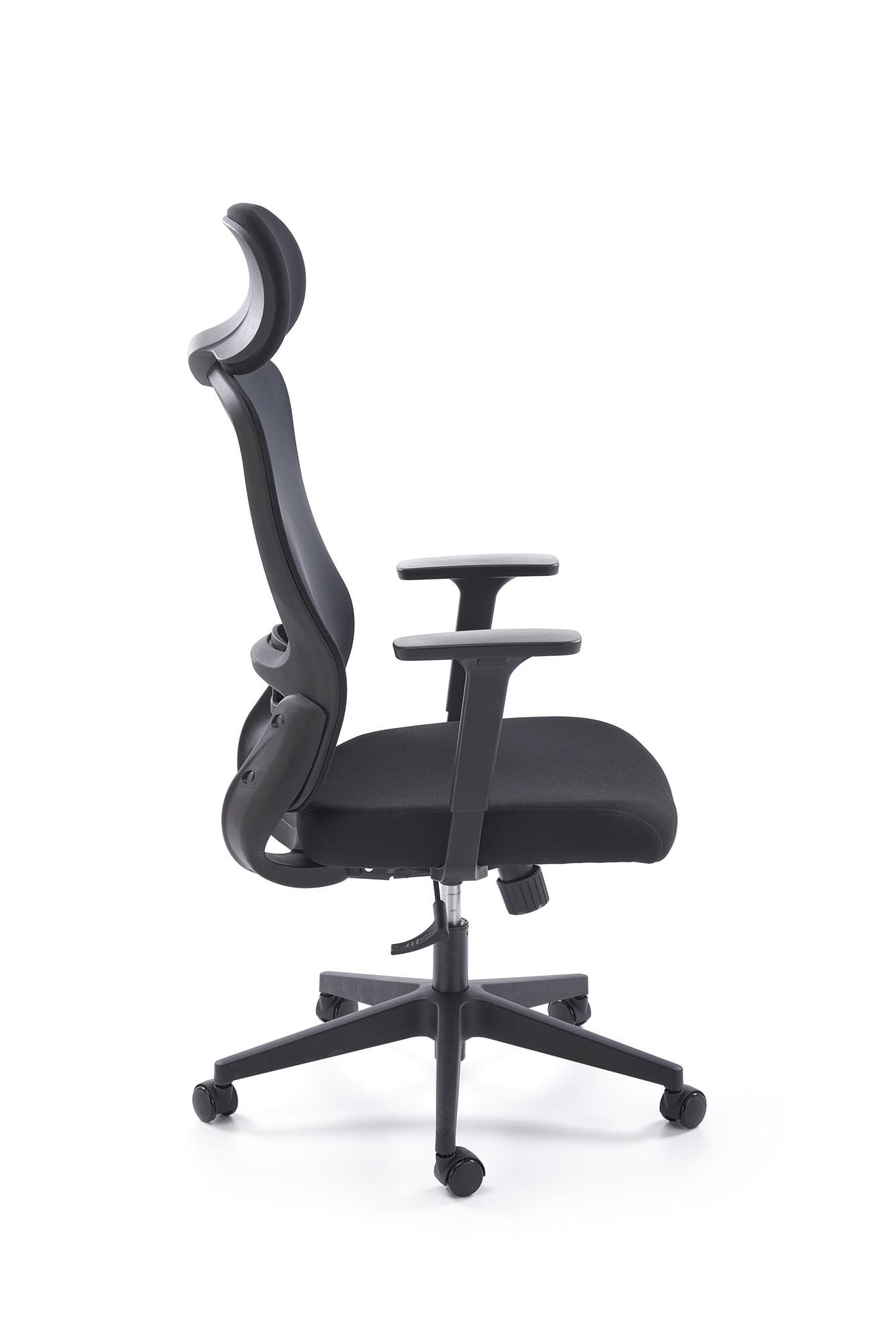 wymiary: 65/65/118-128/42-52 cm; funkcja MULTIBLOCK / regulowane podłokietniki / regulowany punkt podparcia pleców, tkanina membranowa / siatka, kolor: czarny