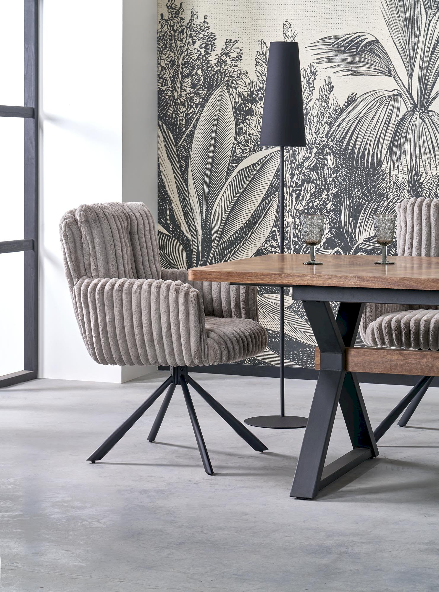 wymiary: 200-350/100/75 cm, stół rozkładany, materiał: MDF + okleina naturalna / stal malowana proszkowo, kolor: blat - orzechowy, nogi - czarny