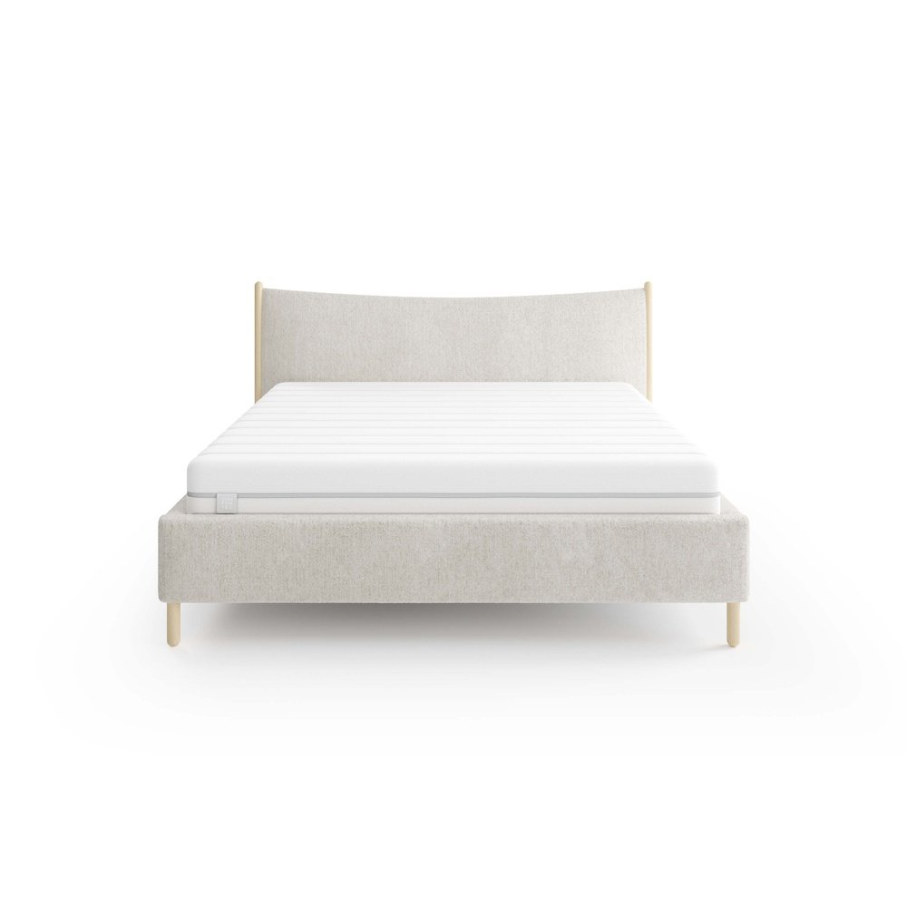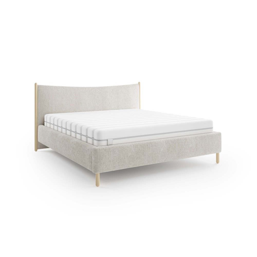 Łóżko Nature marki Comforteo to wyjątkowe połączenie naturalnej surowości i subtelnej elegancji. Jego największym wyróżnikiem jest designerski zagłówek z delikatnym łukiem, który nadaje bryle lekkości i przyjemnego, organicznego charakteru. Całość dopełniają drewniane akcenty w kolorze buku, inspirowane światem przyrody. Smukła forma oparta na wysokich nóżkach (16 cm) sprawia, że łóżko prezentuje się nowocześnie i lekko, a jednocześnie umożliwia bezproblemowe sprzątanie robotem. Model Nature dostępny jest opcjonalnie z pojemnikiem na pościel, co pozwala połączyć estetykę z praktycznym przechowywaniem. To idealny wybór do wnętrz, w których liczy się spokój, naturalne materiały i dopracowany detal.