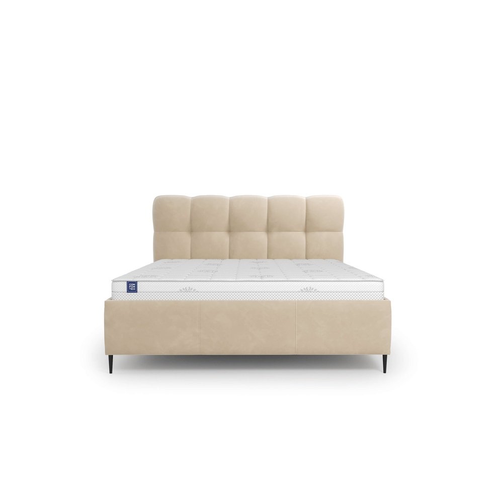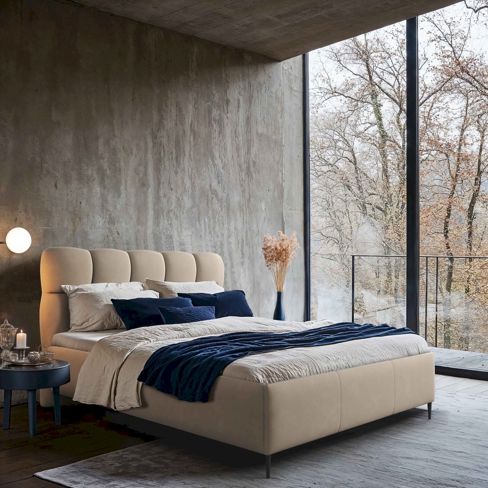 Łóżko Novu od polskiej marki Comforteo to harmonijne połączenie wygody i stylu. Jego uwagę przyciąga miękko tapicerowany zagłówek z wyraźnymi, regularnymi podziałami, który nadaje sypialni elegancki i przytulny charakter, a jednocześnie stanowi mocny akcent dekoracyjny. Model wyposażony jest w pojemnik na pościel w standardzie, co ułatwia organizację przestrzeni i codzienne użytkowanie. Nóżki o wysokości 12 cm sprawiają, że bryła wygląda lekko i nowocześnie, a dodatkowo umożliwiają wygodne sprzątanie przy pomocy robota. Łóżko Novu doskonale odnajdzie się w nowoczesnych i minimalistycznych wnętrzach, oferując komfort na co dzień i estetykę na lata.