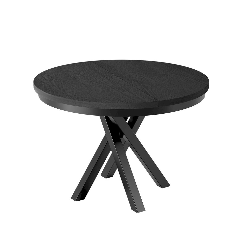 Okrągły stół o minimalistycznym designie i solidnej konstrukcji, który łączy elegancję z funkcjonalnością. Skrzyżowane nogi zapewniają stabilność, a rozkładany mechanizm daje dodatkową przestrzeń przy większych spotkaniach przy stole. Idealny do jadalni i kuchni.
