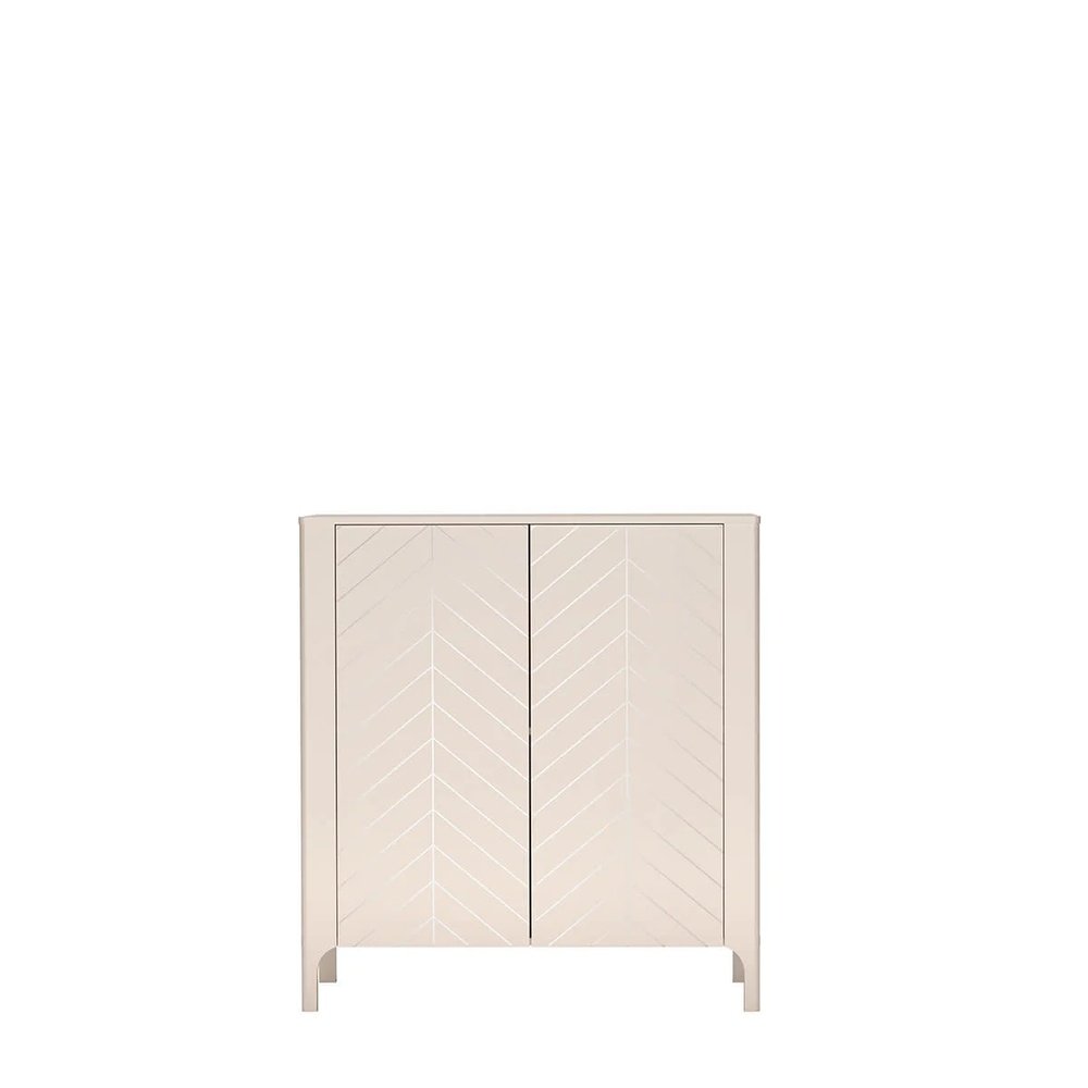 Nowoczesna komoda o minimalistycznym designie, doskonała do mniejszych przestrzeni. Matowe wykończenie i subtelny wzór w jodełkę podkreślają styl kolekcji Malumi, a przestrzeń wewnętrzna zapewnia praktyczne miejsce do przechowywania dekoracji, tekstyliów i akcesoriów domowych.