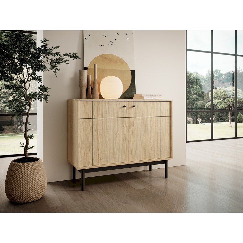 Komoda Japandi K104 to minimalistyczna bryła zaprojektowana w duchu harmonii i funkcjonalności. Prosta forma, wyważone proporcje oraz naturalny dekor inspirowany strukturą drewna sprawiają, że mebel doskonale wpisuje się w spokojne, uporządkowane wnętrza w stylu japandi. Korpus wykonany z wysokiej jakości płyty meblowej gwarantuje trwałość i stabilność konstrukcji, a gładkie fronty bez nadmiaru zdobień podkreślają nowoczesny charakter komody. Subtelne detale oraz stonowana kolorystyka pozwalają łatwo dopasować ją do salonu, sypialni czy domowego biura.