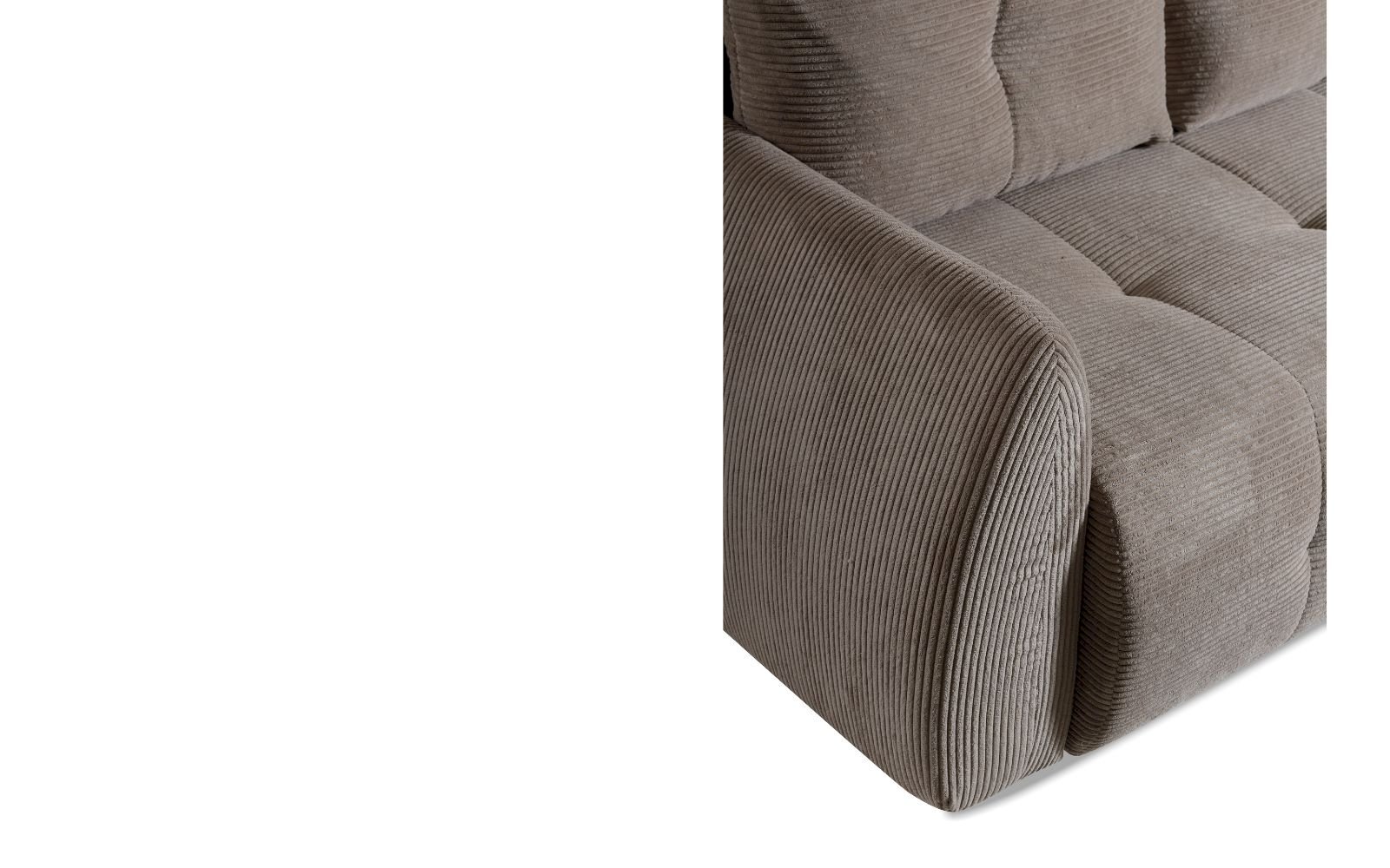 Siedziska narożnika LUNA zostały tak wyprofilowane, by zapewnić wygodę bez kompromisów – są sprężyste, ale nie za miękkie, co pozwala na długie chwile relaksu w pozycji siedzącej lub półleżącej. Oparcia oferują delikatne podparcie pleców, a szeroka otomana zachęca do wygodnego ułożenia nóg. Detale, takie jak starannie wykonane przeszycia i równomierne podziału poduszek, nadają meblowi spójny charakter i wprowadzają do salonu poczucie harmonii.