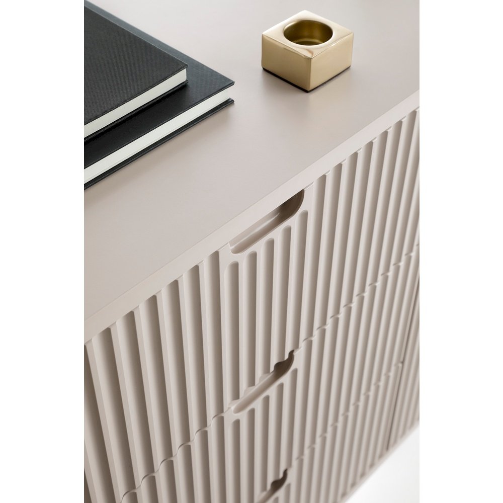 Szafka RTV Zova łączy estetykę z praktycznością. To idealne rozwiązanie do nowoczesnego salonu, w którym liczy się zarówno design, jak i wygodne przechowywanie. Prosta bryła osadzona na smukłych nóżkach prezentuje się lekko i stylowo. Trzy warianty kolorystyczne pozwalają dopasować mebel do aranżacji wnętrza, a złote nóżki dodają mu eleganckiego, luksusowego akcentu. Szafka zapewnia miejsce na sprzęt RTV oraz dodatkową przestrzeń do przechowywania akcesoriów, dokumentów czy tekstyliów. Dzięki przemyślanej konstrukcji pomaga utrzymać porządek w strefie multimedialnej.