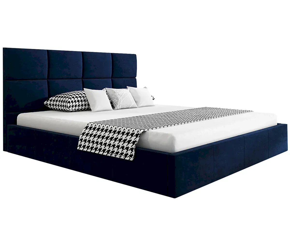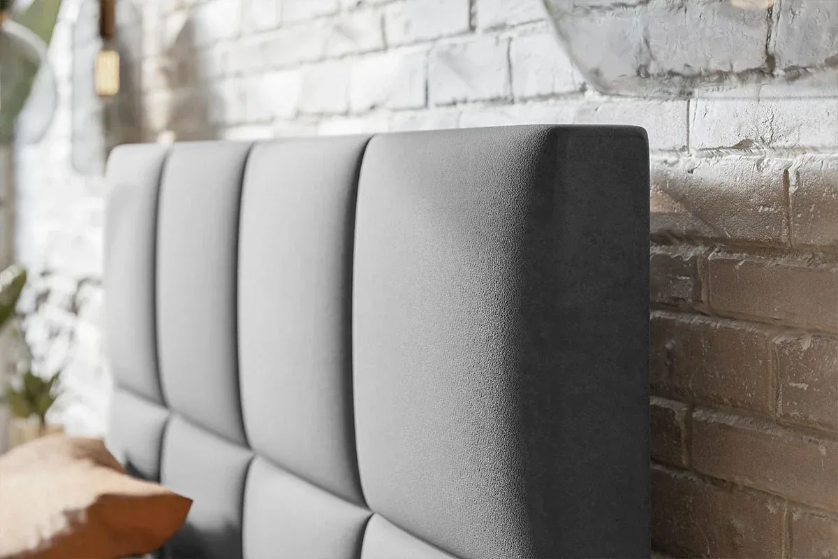Łóżko Slik 1 to propozycja dla osób poszukujących do swojej sypialni mebla o wyrazistej, a zarazem uporządkowanej formie. Dominującym elementem projektu jest wysokie, tapicerowane wezgłowie, które zostało podzielone na sześć symetrycznych, prostokątnych paneli. Takie geometryczne przeszycia nadają bryle nowoczesnego charakteru i sprawiają, że zagłówek stanowi nie tylko wygodne oparcie, ale i efektowną dekorację wnętrza.