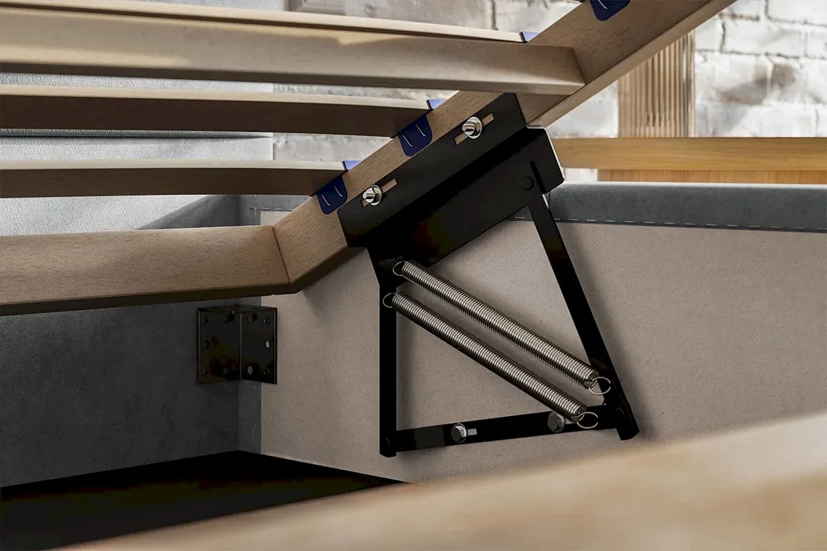 Konstrukcja opiera się na solidnej, w pełni tapicerowanej ramie, która tworzy z wezgłowiem spójną, monolityczną całość. Prosta linia podstawy podkreśla minimalistyczny styl mebla, pozwalając na swobodną aranżację przestrzeni sypialni. Slik 1 to idealne połączenie funkcjonalności z designem typu soft-modern, gdzie miękkość tkaniny spotyka się z surowością geometrycznych podziałów. To łóżko, które wprowadza do sypialni atmosferę spokoju, luksusu i profesjonalnego rzemiosła.