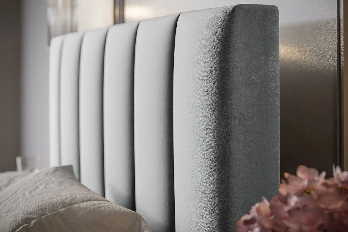 Łóżko BED 1 to kwintesencja współczesnego designu, który wprowadza do sypialni ład, harmonię i wyjątkowy styl. Najbardziej charakterystycznym elementem tego modelu jest wysokie, tapicerowane wezgłowie, podzielone na szerokie, pionowe pasy. Ten rytmiczny układ paneli nie tylko stanowi elegancką dekorację ściany, ale również optycznie podwyższa pomieszczenie, nadając mu luksusowego charakteru.