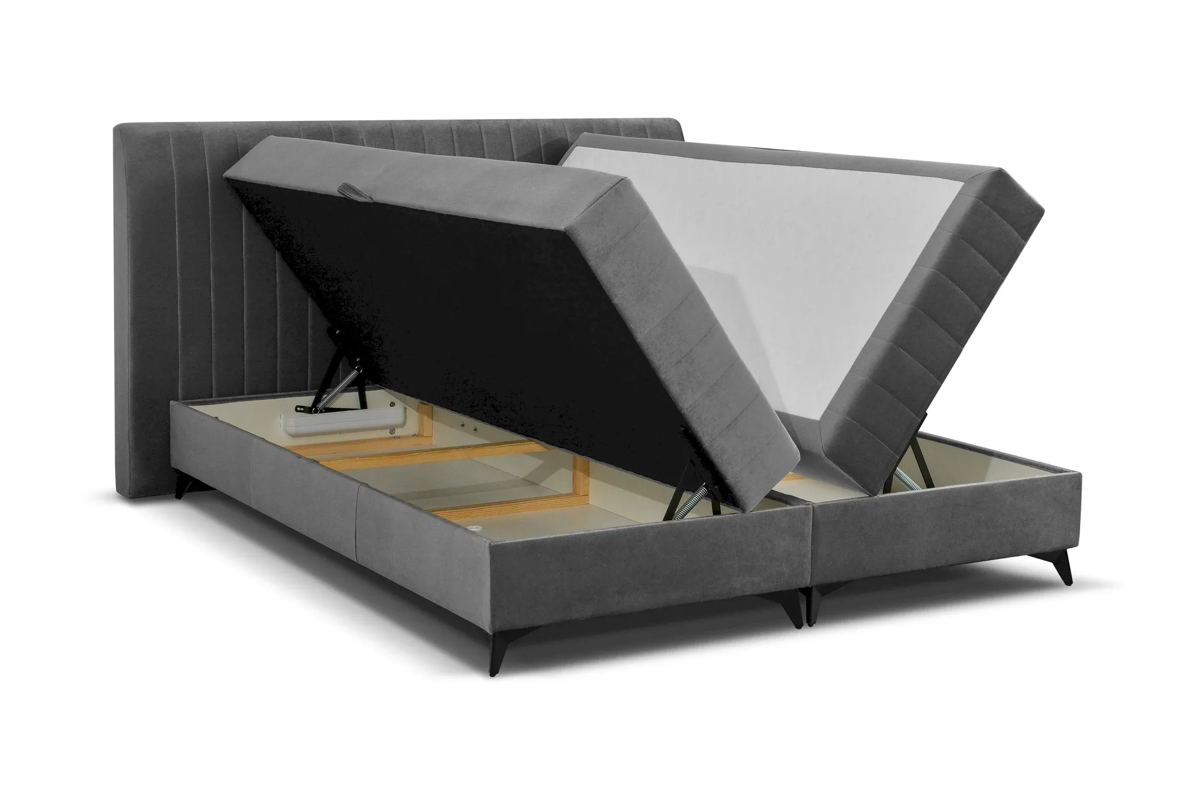 To, co wyróżnia model Nobu na tle innych konstrukcji kontynentalnych, to zastosowanie wysokich, smukłych nóżek w kolorze głębokiej czerni. Unoszą one masywną ramę nad podłogę, dodając całości subtelności i ułatwiając utrzymanie czystości pod meblem. Wykonane z dbałością o każdy detal, łóżko Nobu w tkaninie Amon 11 staje się fundamentem sypialni w stylu loftowym lub modern classic, oferując nie tylko najwyższy komfort snu, ale i wyrafinowaną estetykę klasy premium.