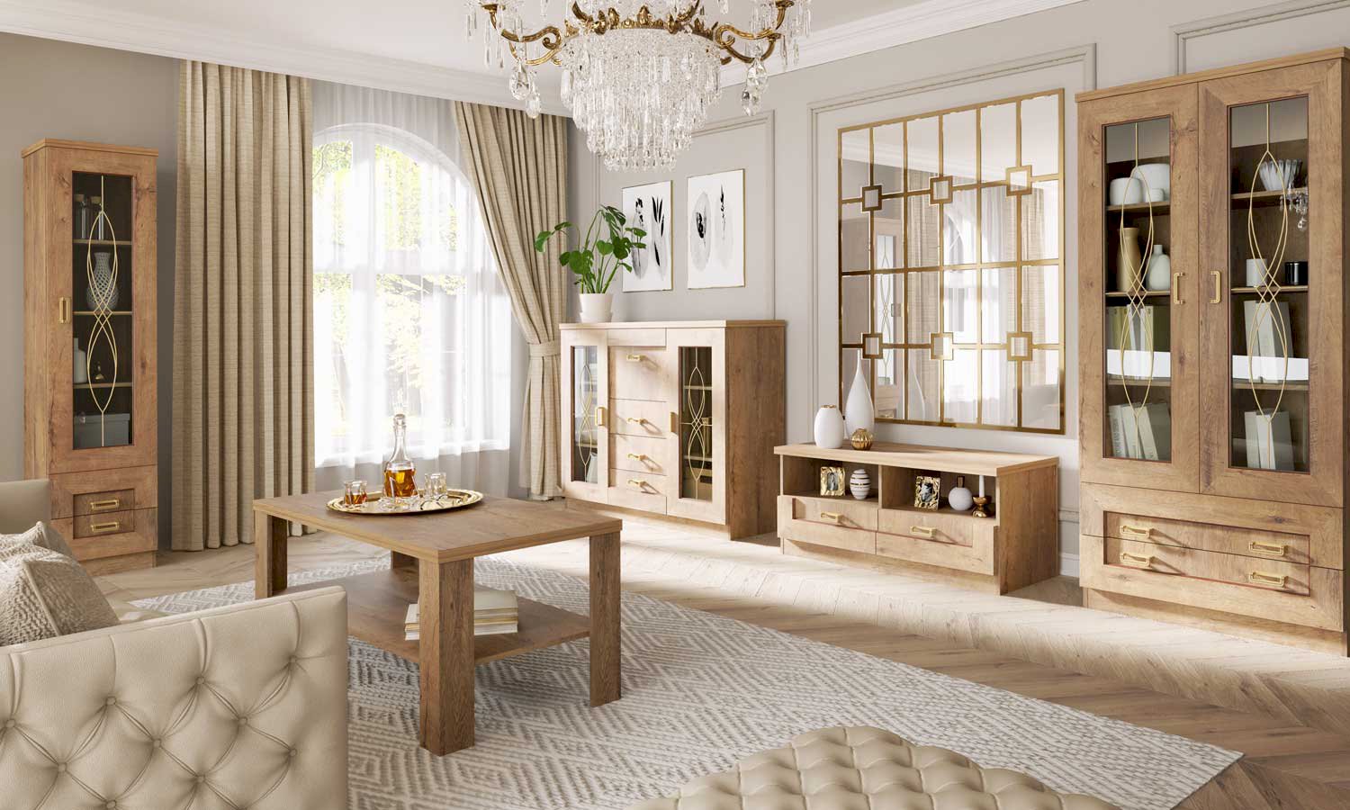 Meble systemowe z kolekcji Tadeusz, to kolejny wysokiej jakości produkt poszerzający nasz sklep internetowy. System ten dostępny w dwóch różnych wybarwieniach: nowoczesny dąb lefkas i typowo klasyczny dąb stuletni. Kolekcja stworzona jest dla osób ceniących funkcjonalność, niebanalność i przyjazną cenę. Meble te pasują zarówno do salonu, pokoju dziennego, sypialni jak i do przedpokoju i jadalni. Największym atutem jest z pewnością niespotykany styl i wzornictwo tych mebli. Pogrubiona ramka na frontach z płyty MDF i metalowe uchwyty nadają meblom masywnego i niepowtarzalnego charakteru, a ołowiane zdobienia na szybach witryn delikatności i oryginalności. Oprócz oryginalnego wyglądu i funkcjonalności warto zwrócić uwagę również na solidne wykonanie z materiałów najwyższej jakości, dzięki czemu meble będą mogły służyć Państwu przez wiele długich lat. Jeżeli jesteś miłośnikiem klasycznych i eleganckich wnętrz, to kolekcja ta jest najlepszym rozwiązaniem dla Ciebie.