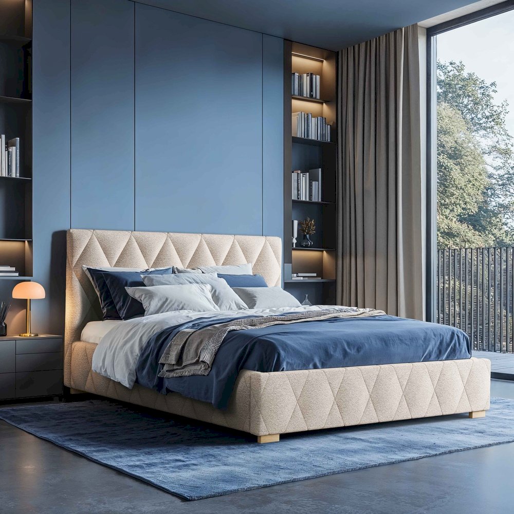Łóżko standardowo posiada tył zagłówka wykonany z lekkiego, czarnego materiału (tzw. podbitka). Istnieje możliwość wykonania tyłu z materiału wybranego na łóżko za dopłatą (prosimy o kontakt w sprawie wyceny po wybraniu materiału i rozmiaru łóżka).