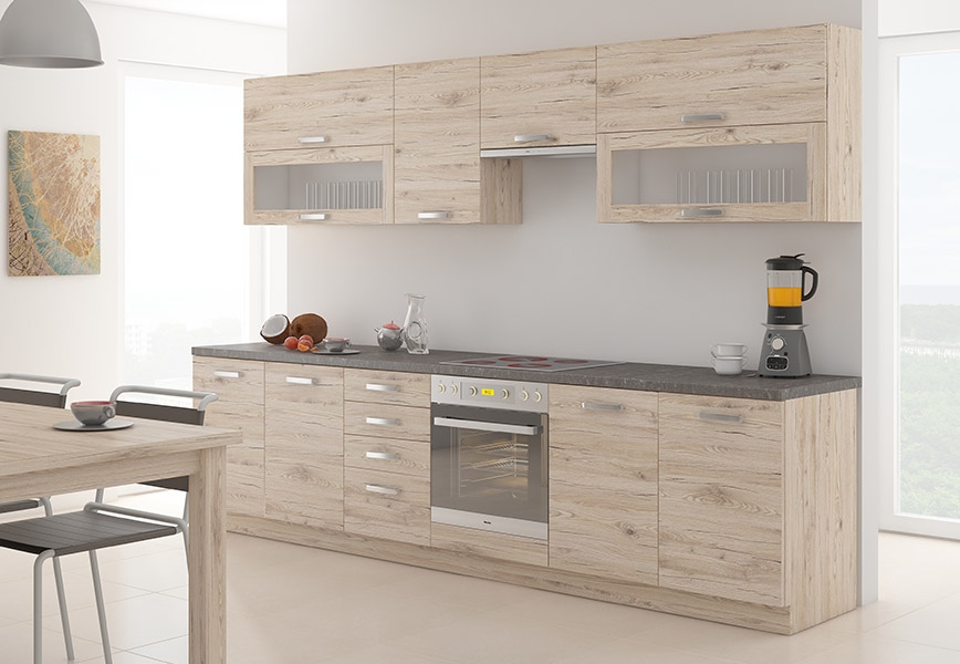 Bordeaux to kuchnia w pełni modułowa, co pozwala na elastyczne projektowanie zabudowy bez konieczności ponoszenia kosztów mebli na wymiar. Szeroki asortyment brył widoczny w ofercie obejmuje: